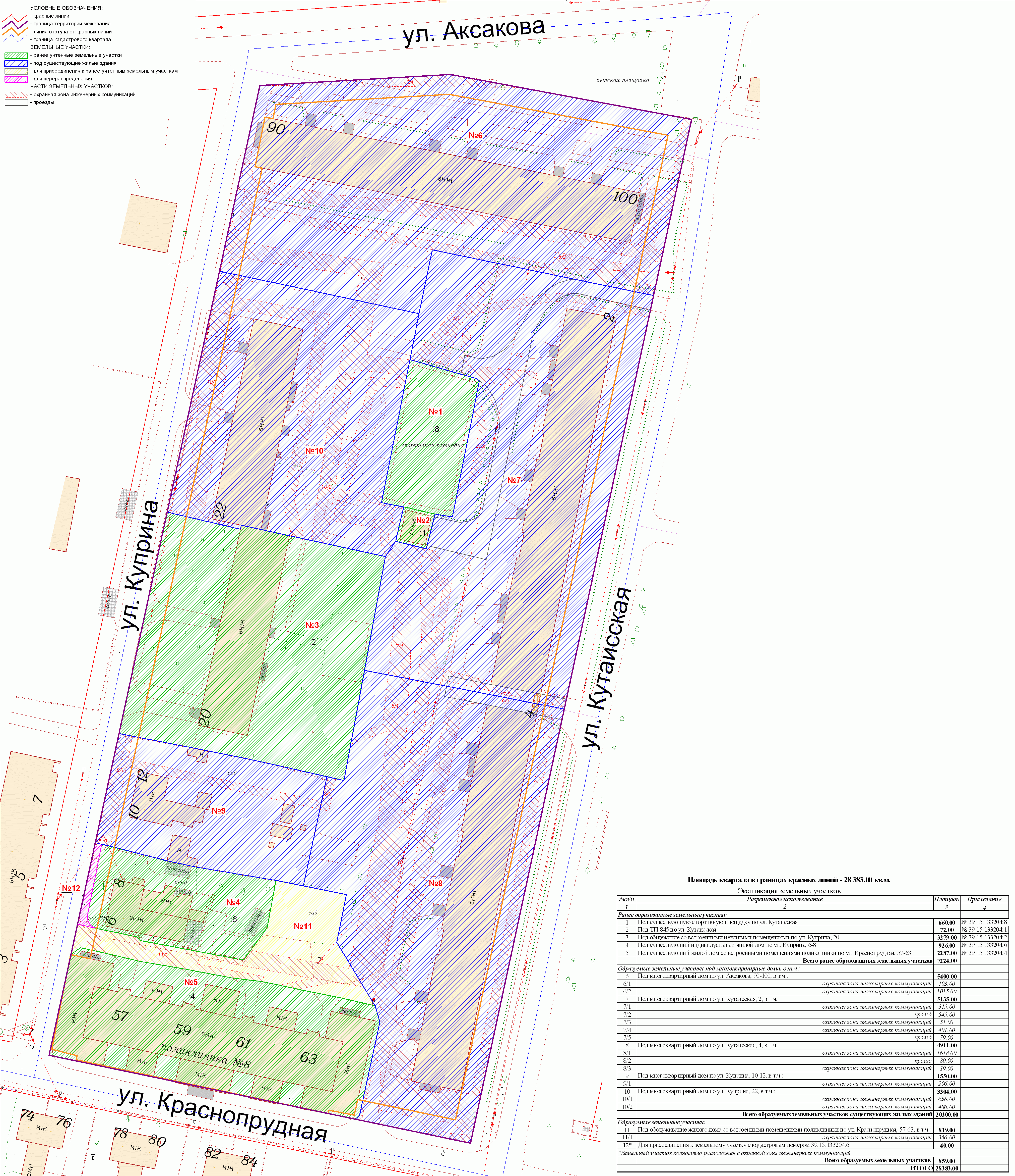 | 135 | Проект межевания квартала в границах красных линий улиц Куприна – Аксакова – Кутаисская – Краснопрудная | публичные слушания назначены на 17.06.2010 в 17-00 по адресу: ул. Сведлова, 27 (Школа №13), актовый зал | Проект границ | Заключение |