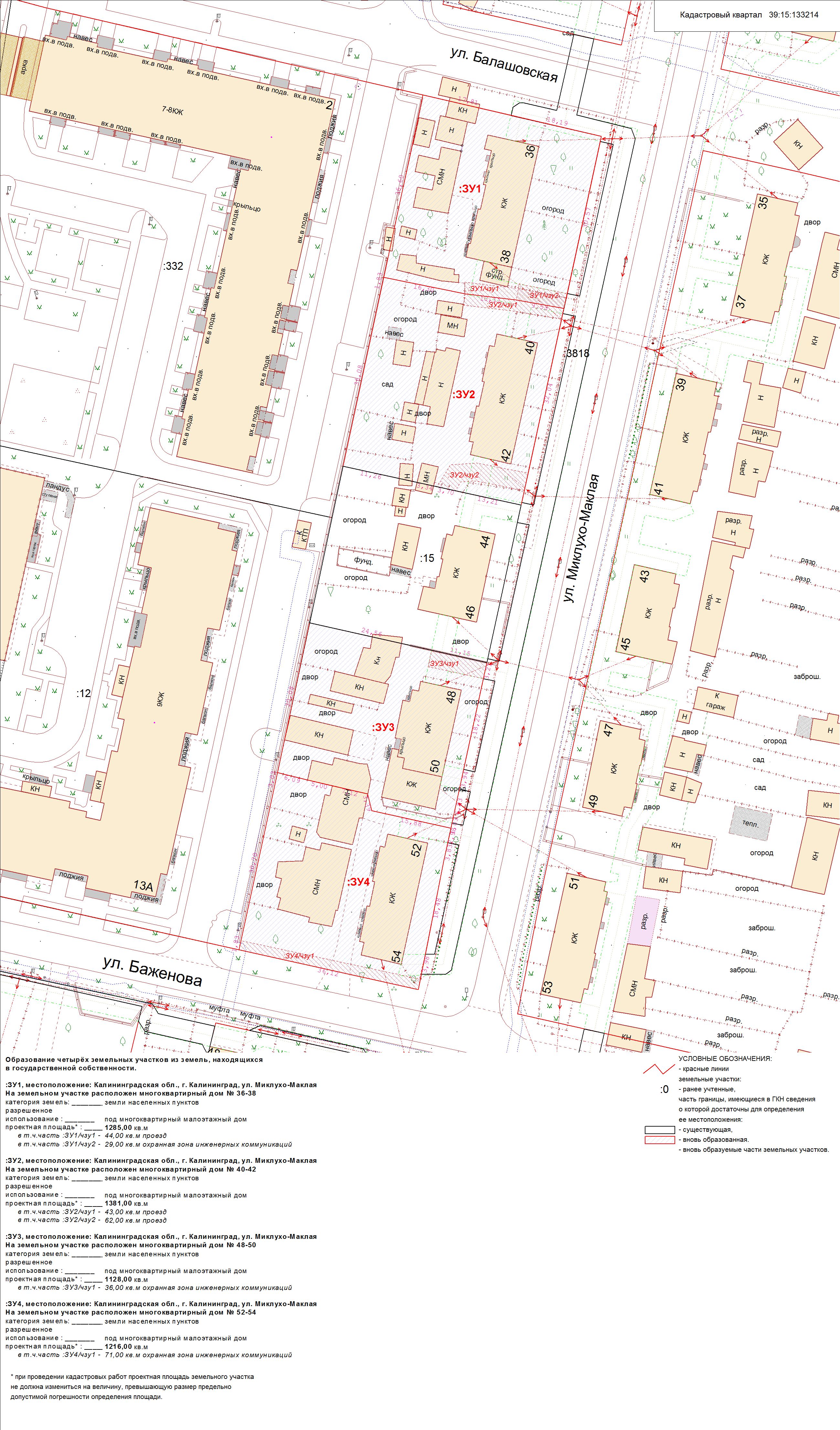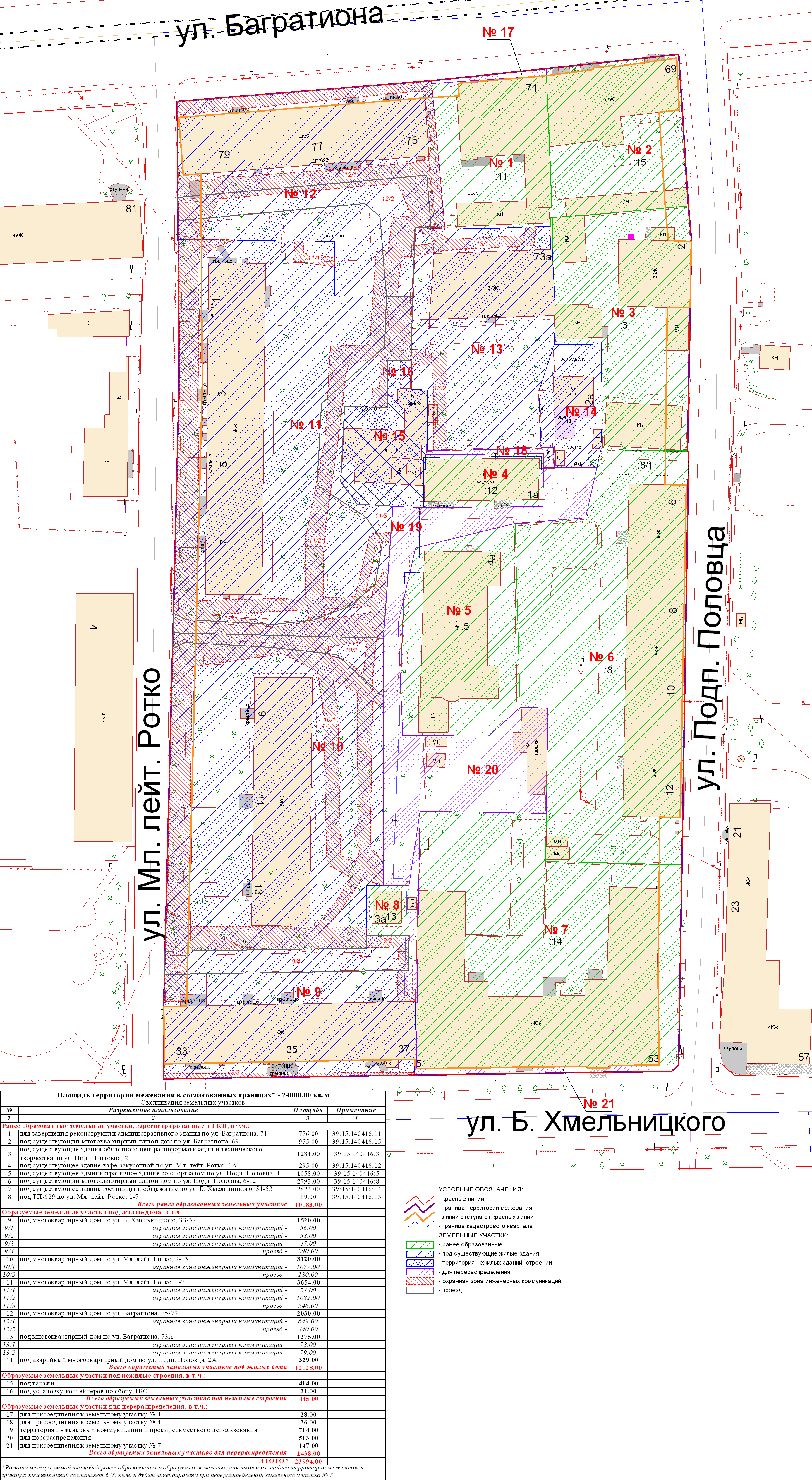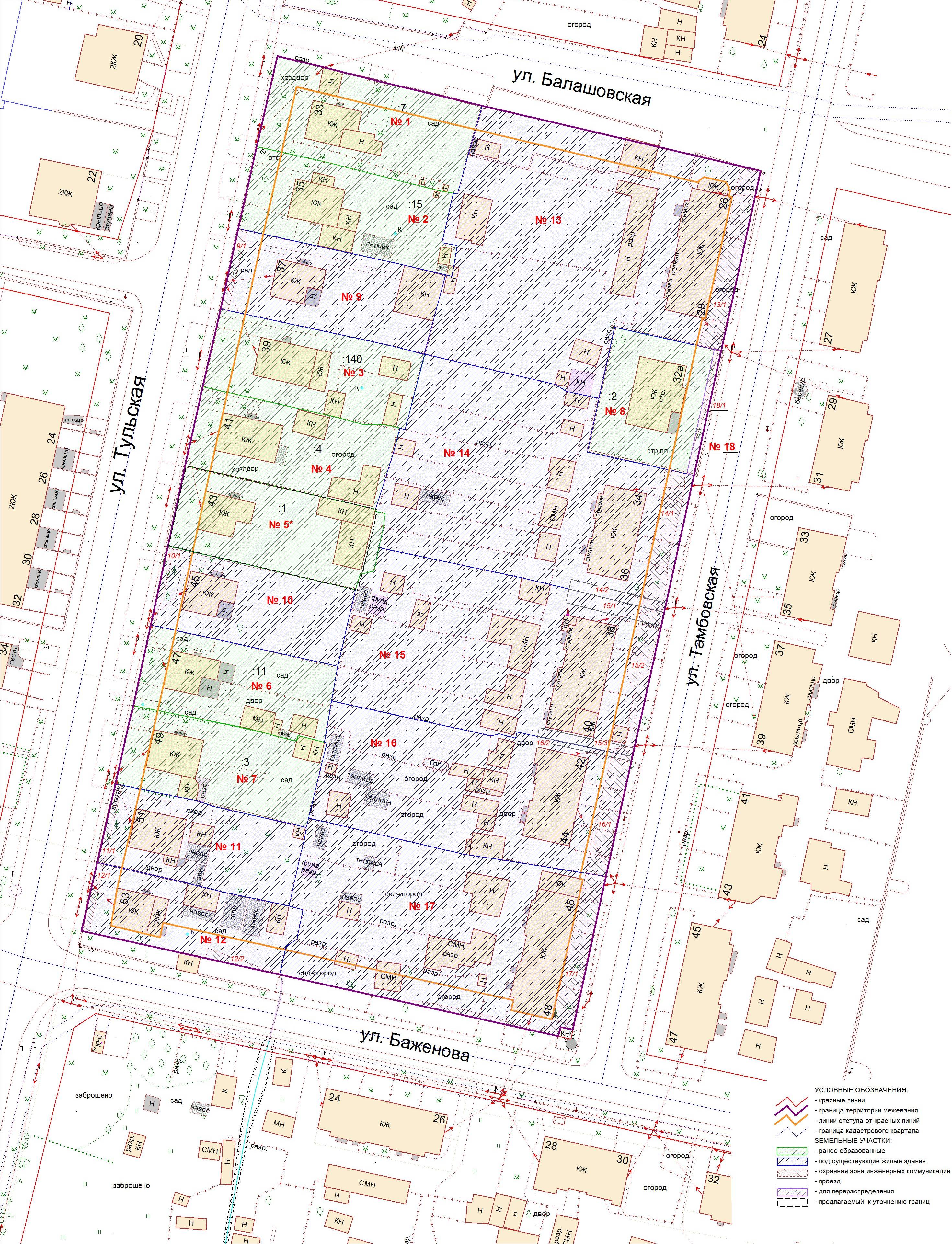 | Проект межевания квартала в границах красных линий ул. Славянская – ул. Сухумская – ул. Карташева – ул. Урицкого | Публичные слушания по проектам межевания квартала в границах красных линий ул. Славянская – ул. Сухумская – ул. Карташева – ул. Урицкого состоятся 27.06.2012 г. в 17.30 в здании администрации Центрального района ГО «Город Калининград» (ул. К. Маркса, 43, актовый зал, 4-й этаж) | Проект границ Проект границ откорректированный по итогам публичных слушаний | ||