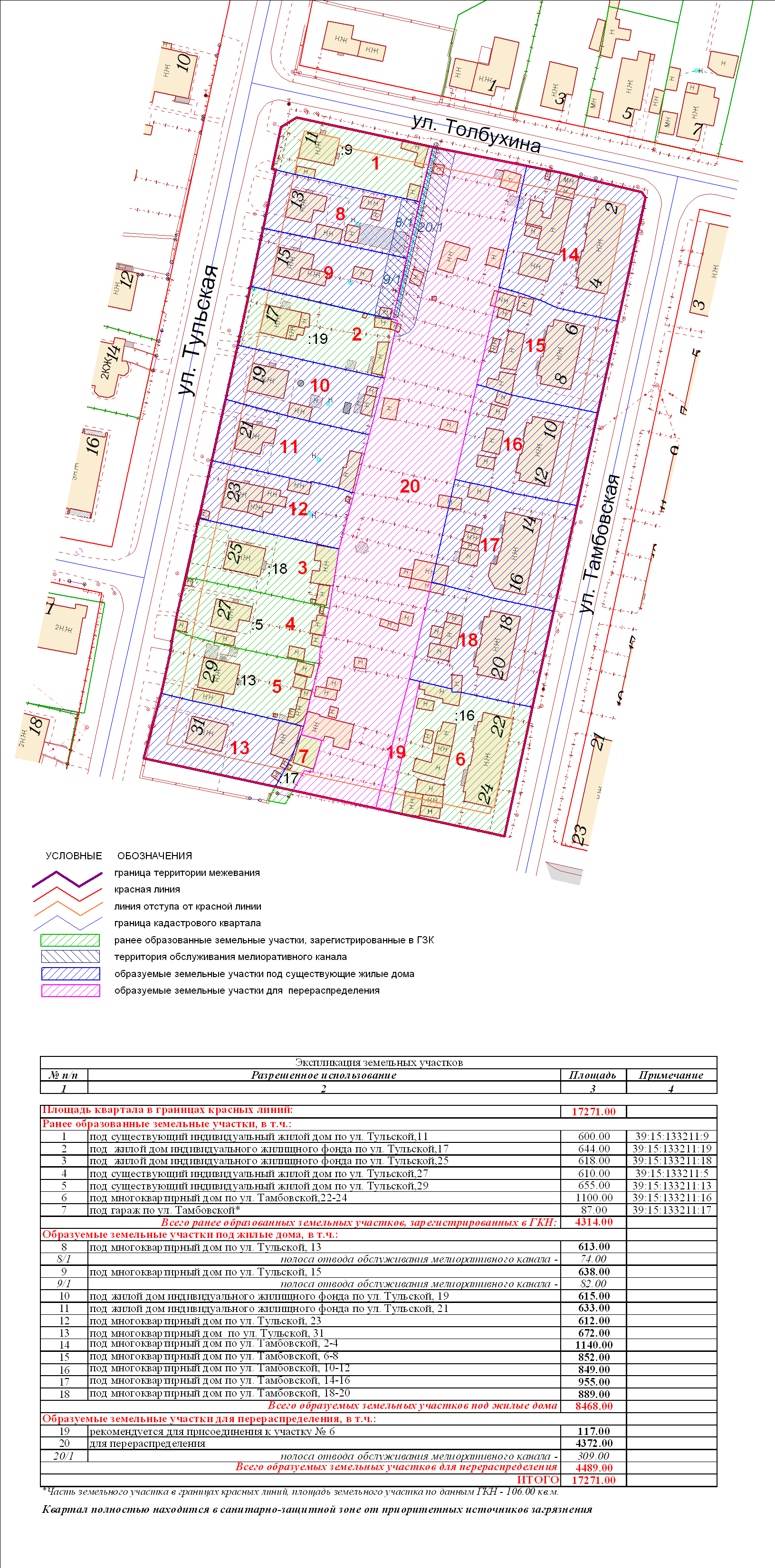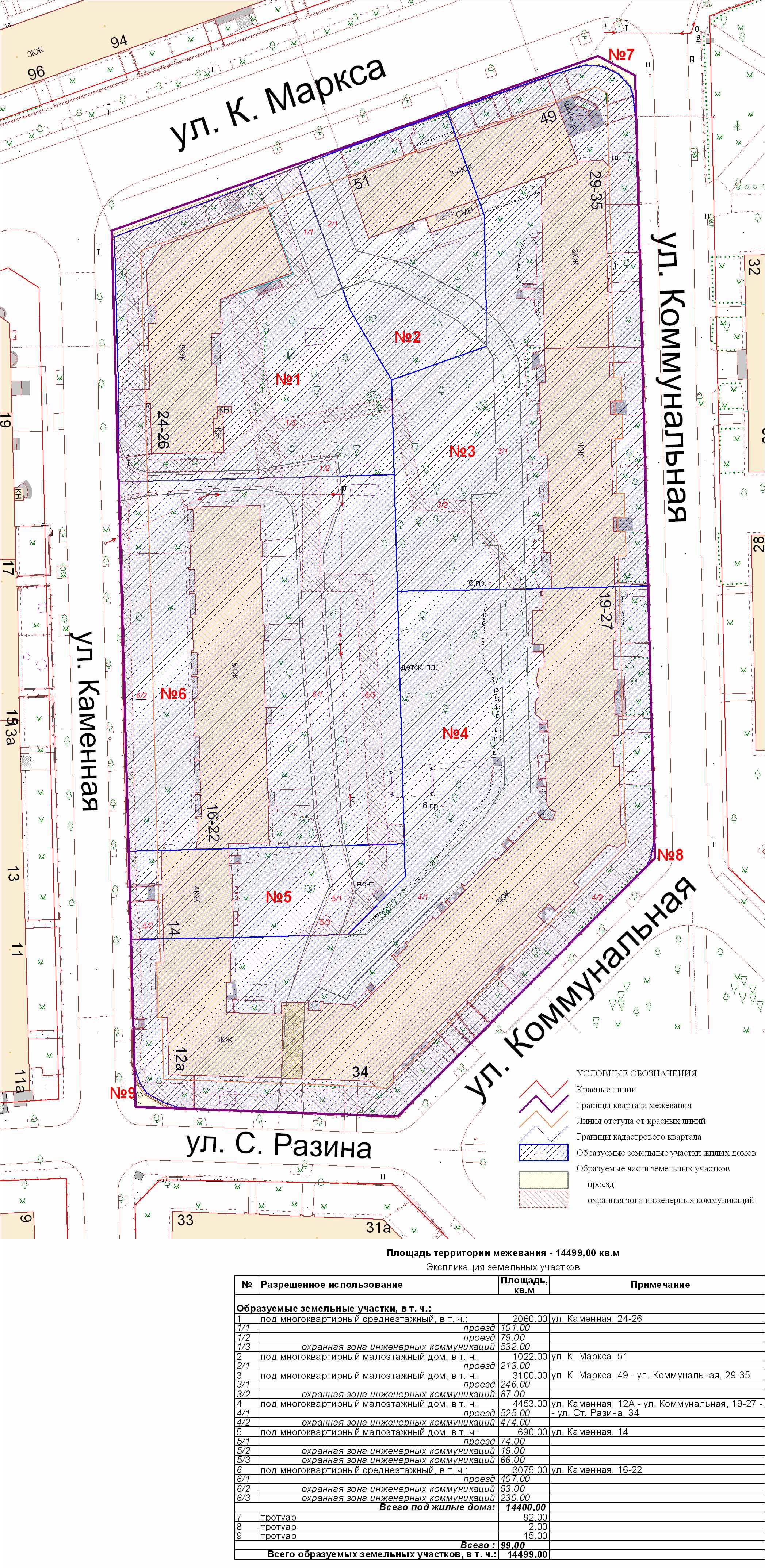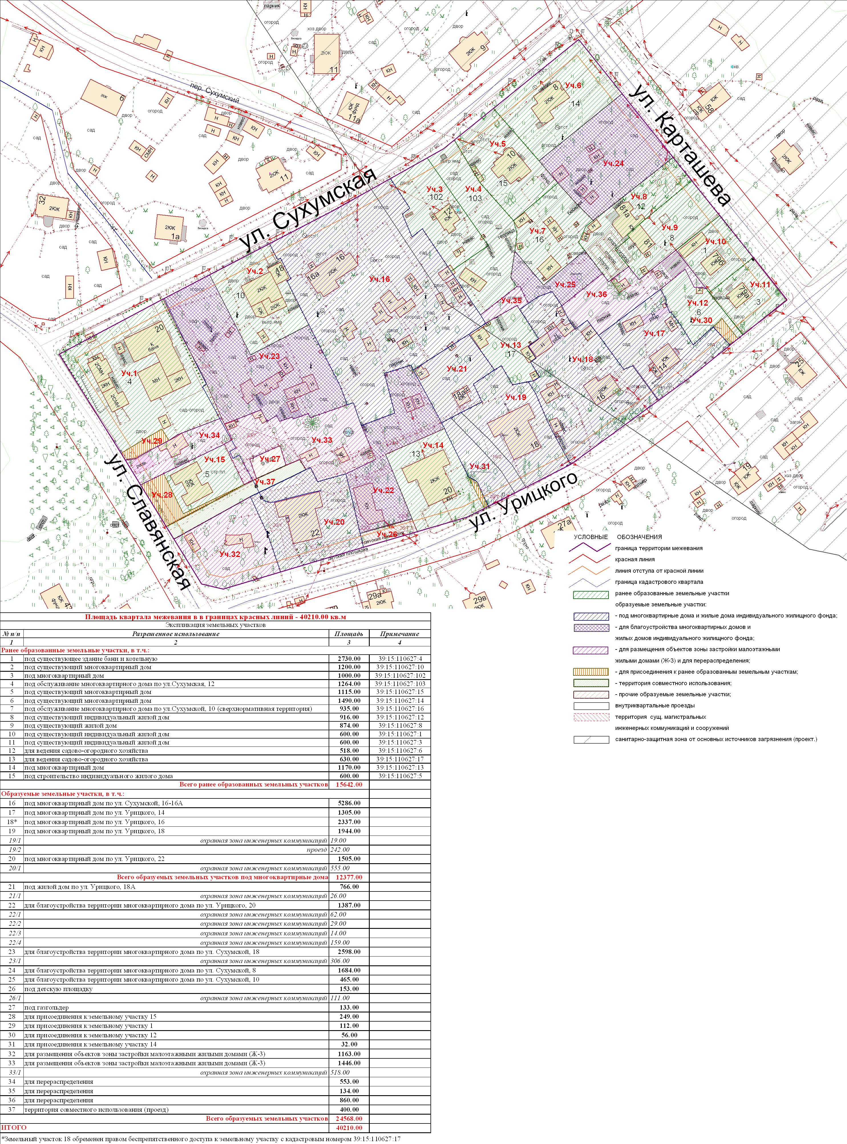 | Проект межевания квартала в границах красных линий ул. Славянская – ул. Сухумская – ул. Карташева – ул. Урицкого | Публичные слушания по проектам межевания квартала в границах красных линий ул. Славянская – ул. Сухумская – ул. Карташева – ул. Урицкого состоятся 27.06.2012 г. в 17.30 в здании администрации Центрального района ГО «Город Калининград» (ул. К. Маркса, 43, актовый зал, 4-й этаж) | Проект границ Проект границ откорректированный по итогам публичных слушаний | ||