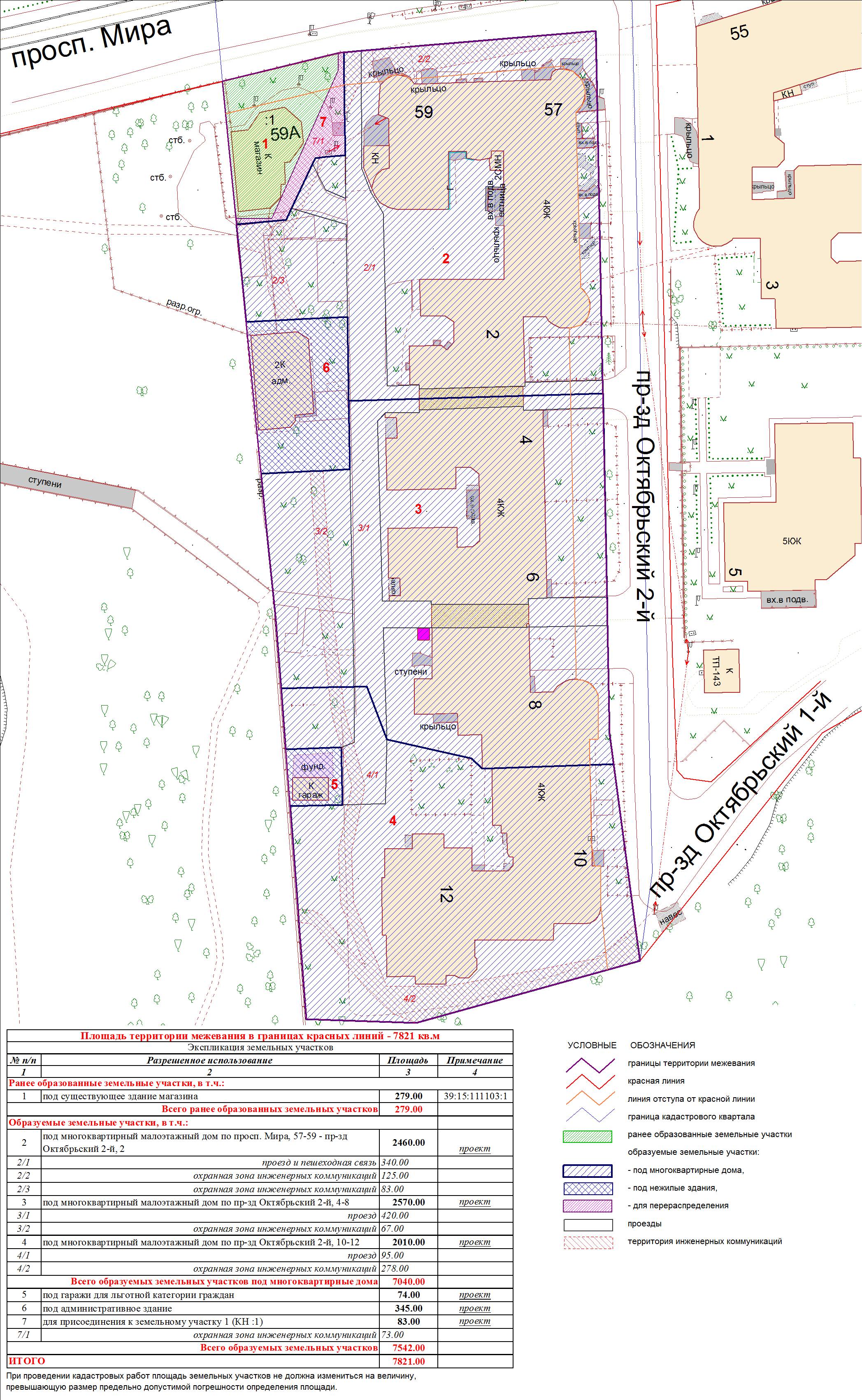 | Проект межевания территории территории в границах улицы Менделеева – проспекта Мира в Центральном районе города Калининграда | Оповещение Проект границ | Заключение | ||
