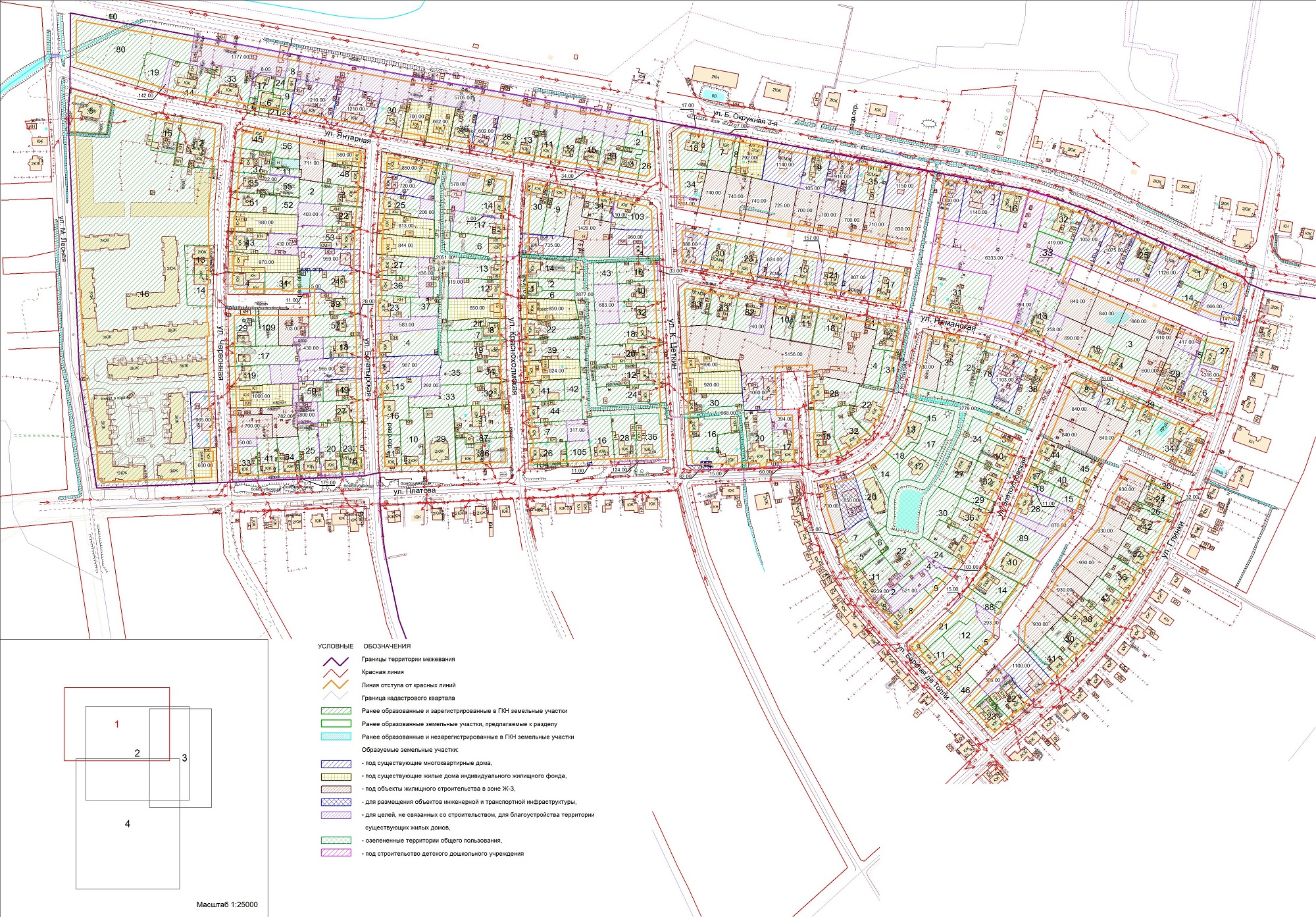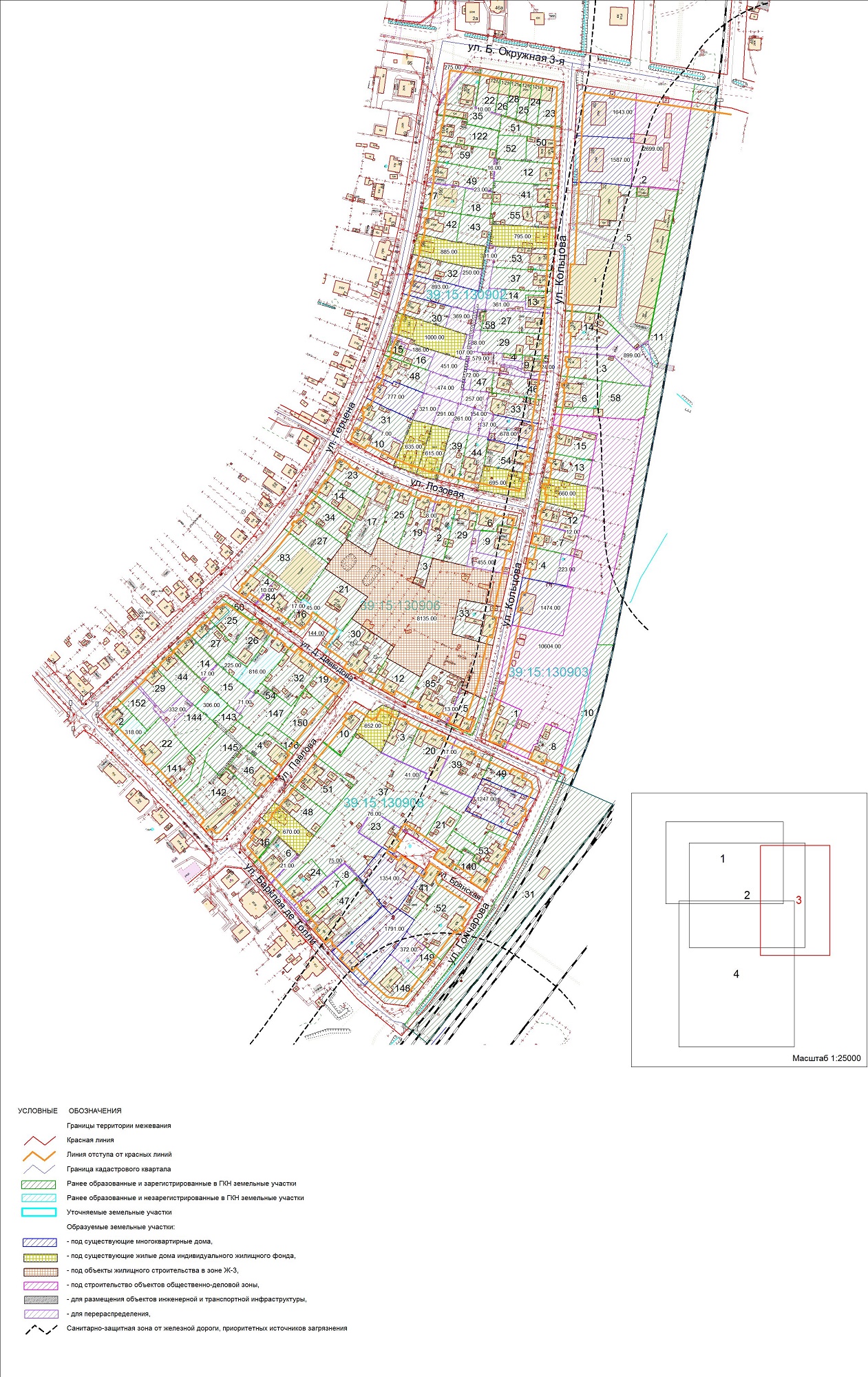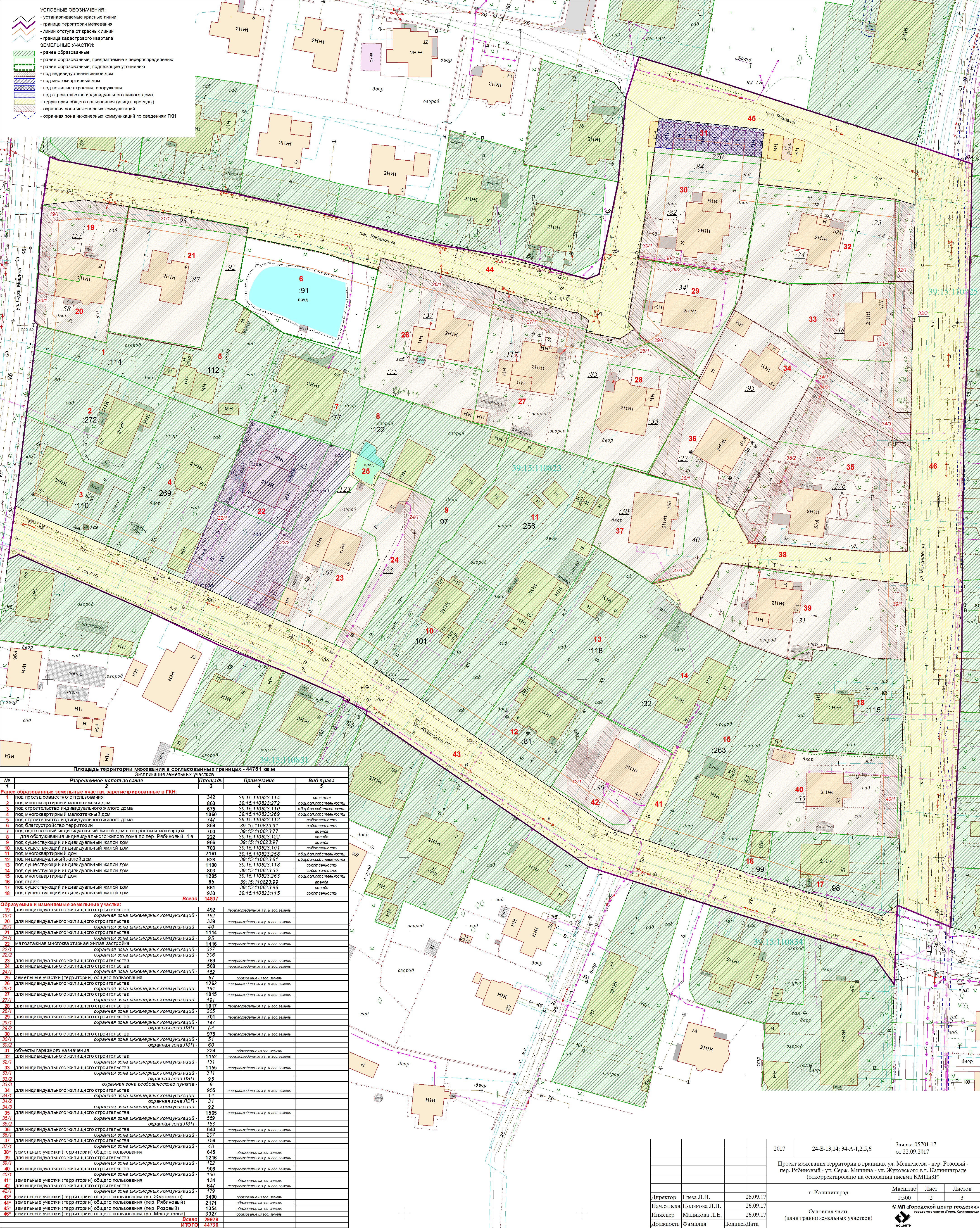| Проект межевания территории в границах ул. Менделеева - пер. Розовый - пер. Рябиновый - ул. Серж. Мишина - ул. Жуковского в г.Калининграде | Публичные слушания назначены на 22.11.2017 в 17.00 по адресу ул. Чайковского, 52, каб. 206 по проекту межевания территории в границах ул. Менделеева - пер. Розовый - пер. Рябиновый - ул. Серж. Мишина - ул. Жуковского в г.Калининграде | Проект границ | Заключение | |