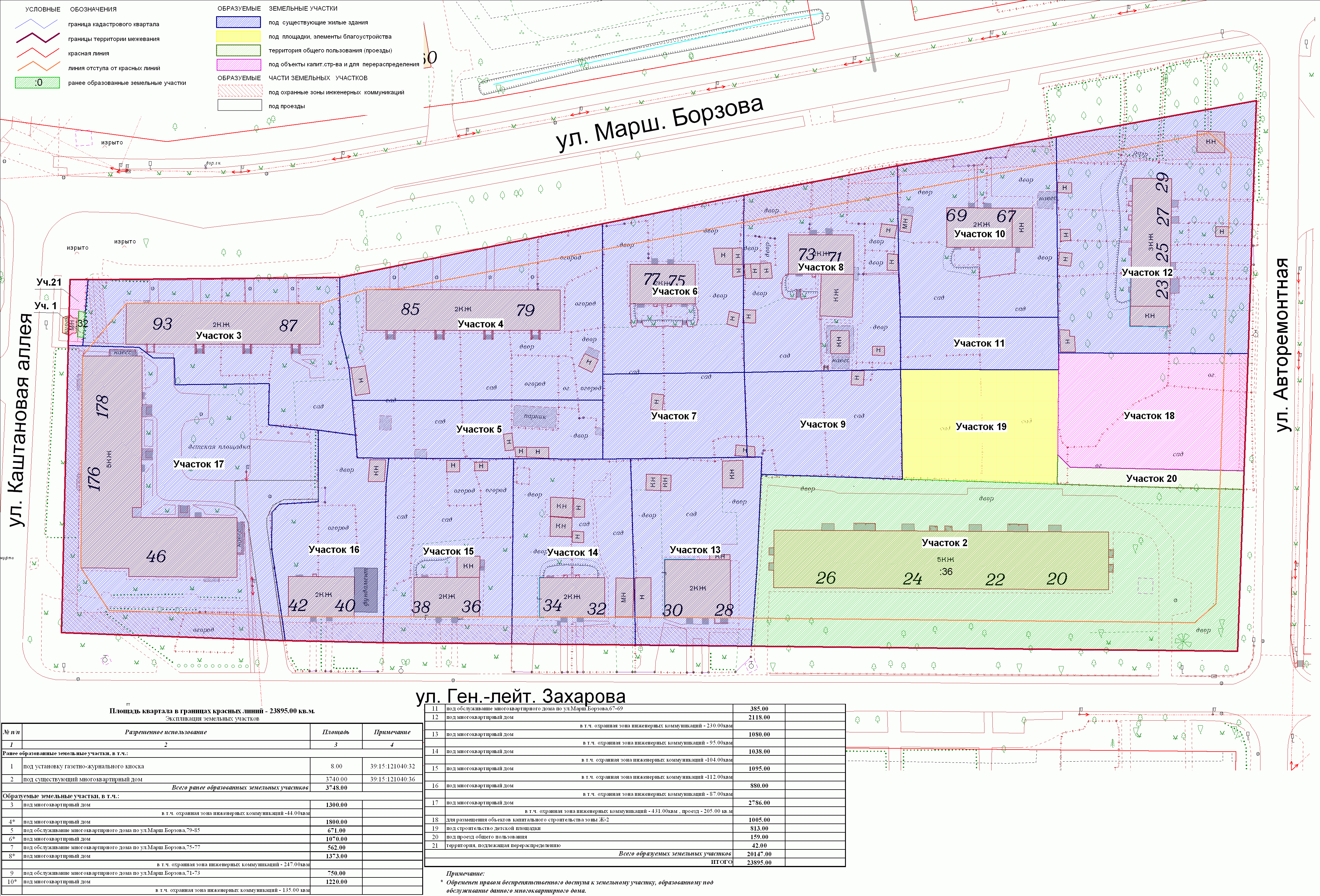 | 133 | Проект межевания квартала в границах красных линий улиц Маршала Борзова – Авторемонтная – Каштановая аллея – Генерала Захарова | публичные слушания назначены на 08.07.2010 в 17-00 по адресу: ул.К.Маркса, 43 (администрация Центрального района, 4 этаж, актовый зал) | Проект границ | Заключение |