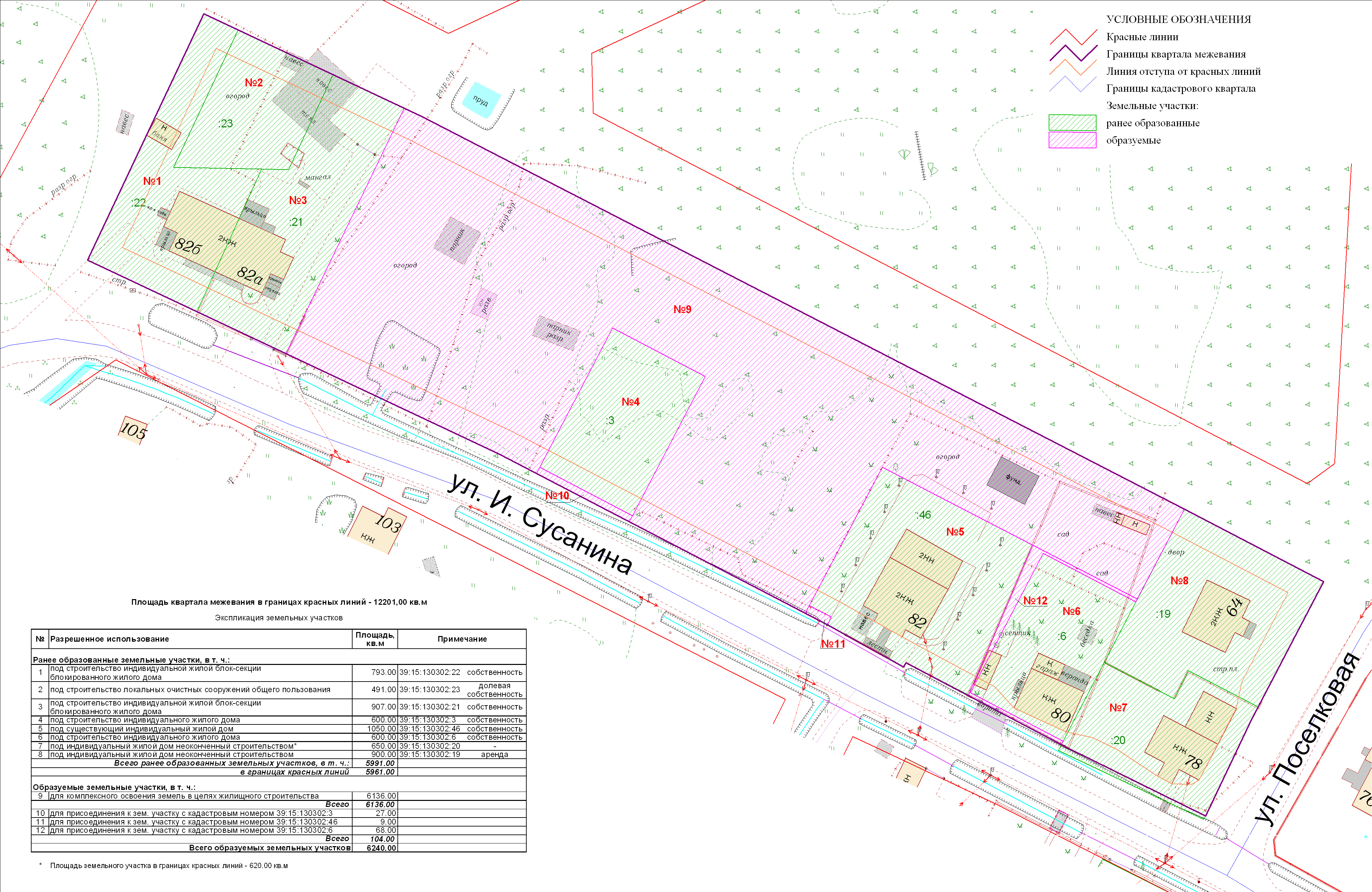 | 122 | Проект межевания квартала в границах красных линий улиц Сусанина-Поселковая | 15 июня 2011г., в 17.00 по адресу: г. Калининград, ул. Фрунзе, 71, кабинет № 25а (здание администрации Ленинградского района) | Проект границ Постановление о проведении публичных слушаний | Заключение |