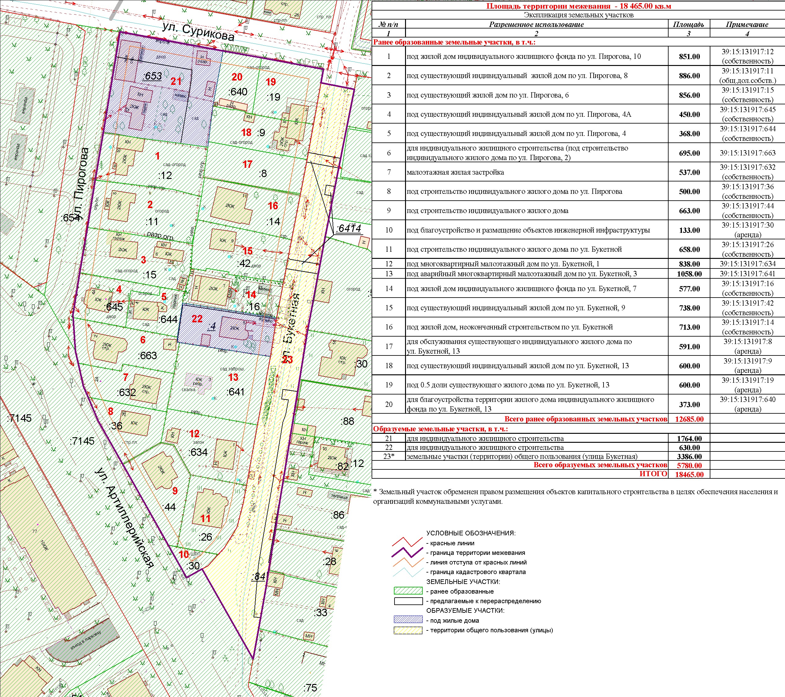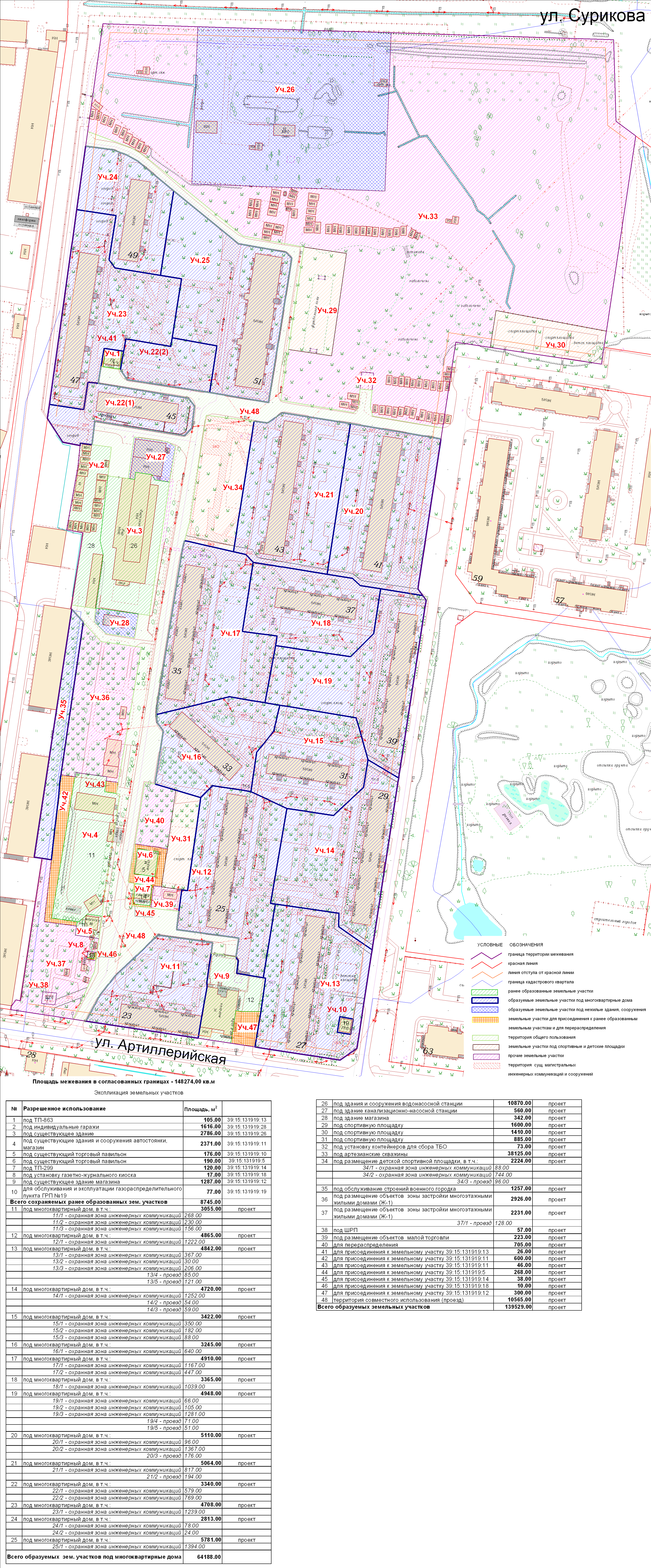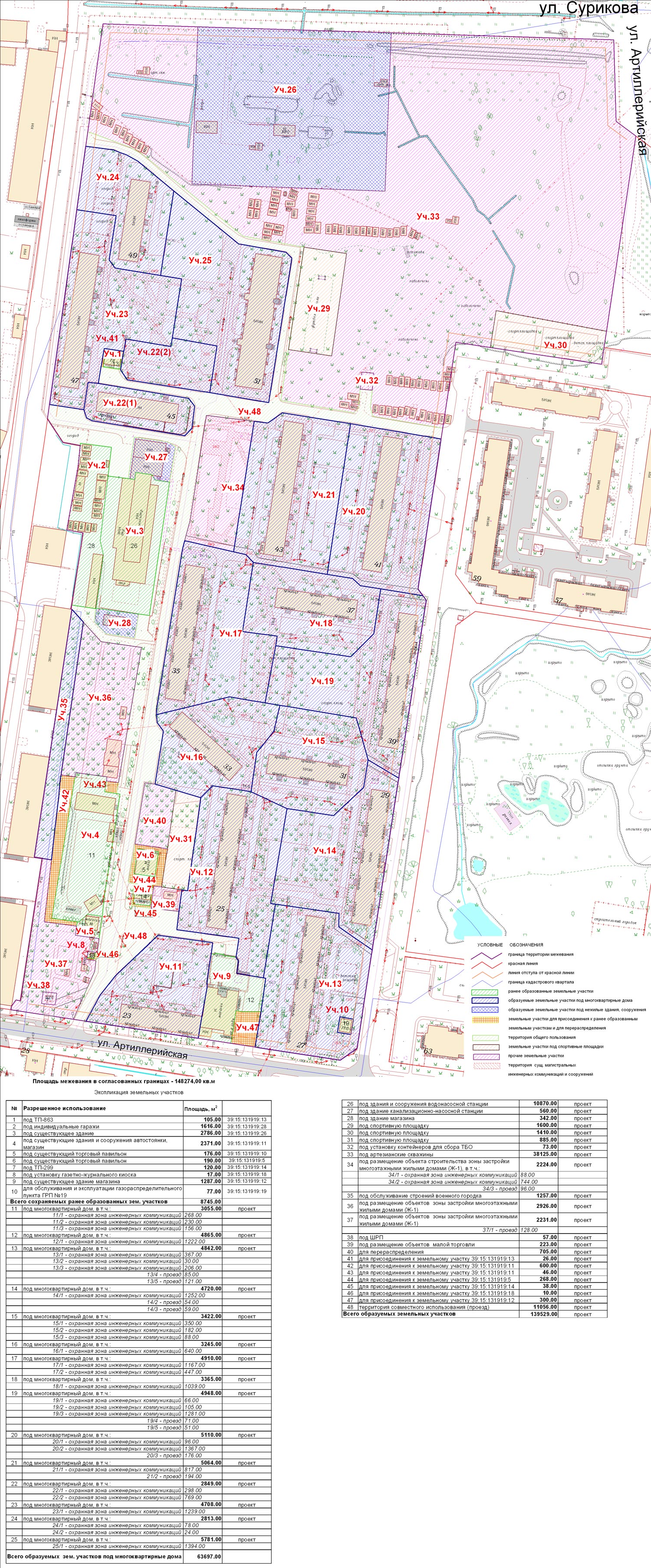 | Проект межевания территории в границах красных линий ул. Сурикова - ул. Букетная - ул. Артиллерийская - ул. Пирогова | Публичные слушания по проекту межевания территории в границах красных линий ул. Сурикова - ул. Букетная - ул. Артиллерийская - ул. Пирогова состоятся 22 декабря 2016 г. в 17.00 по адресу г. Калининград, ул. Фрунзе, 71, кабинет №25а (административное здание) | Проект границ | Заключение | |