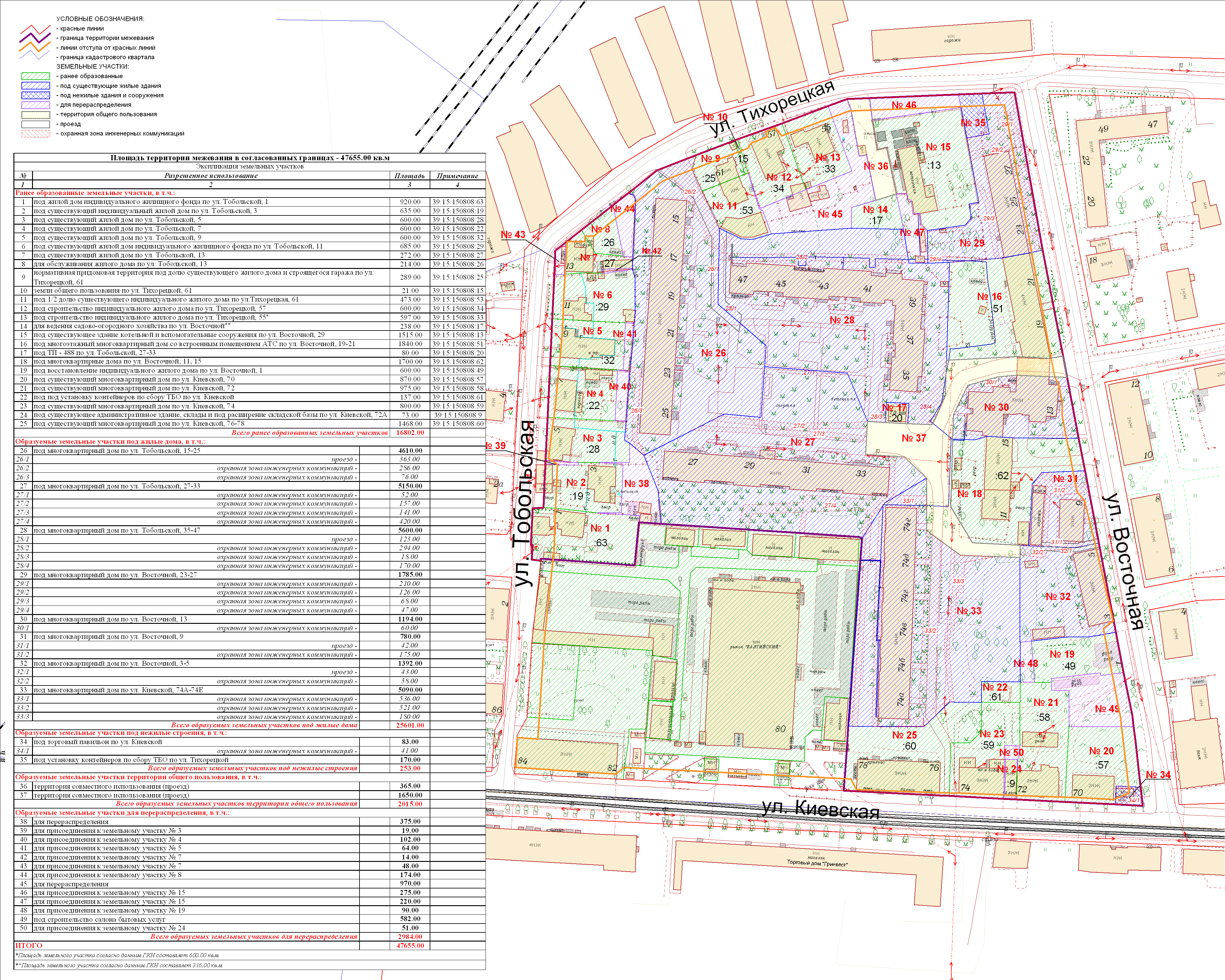 | 160 | Проект межевания квартала в границах красных линий ул. Тобольская – ул. Тихорецкая – ул. Восточная – ул. Киевская | Публичные слушания по проекту межевания квартала в границах красных линий улиц Тобольская – Тихорецкая – Восточная – Киевская состоятся 10 октября 2011 г., в 17.00 в помещении МОУ ДОЦ ДТД и М «Янтарь» (ул. Судостроительная, 2) | Проект границ Проект границоткорректированный по итогам публичных слушаний | Заключение |