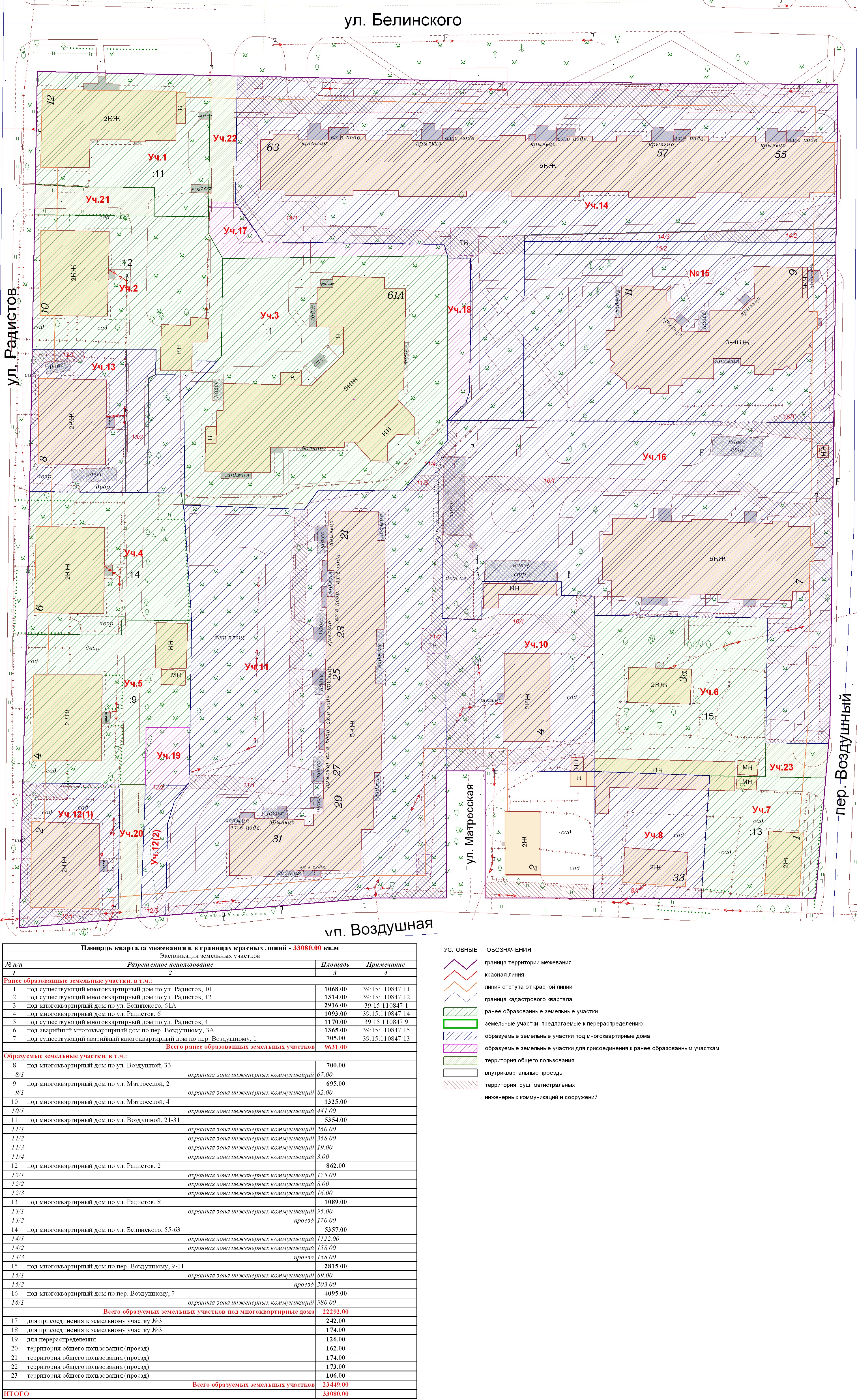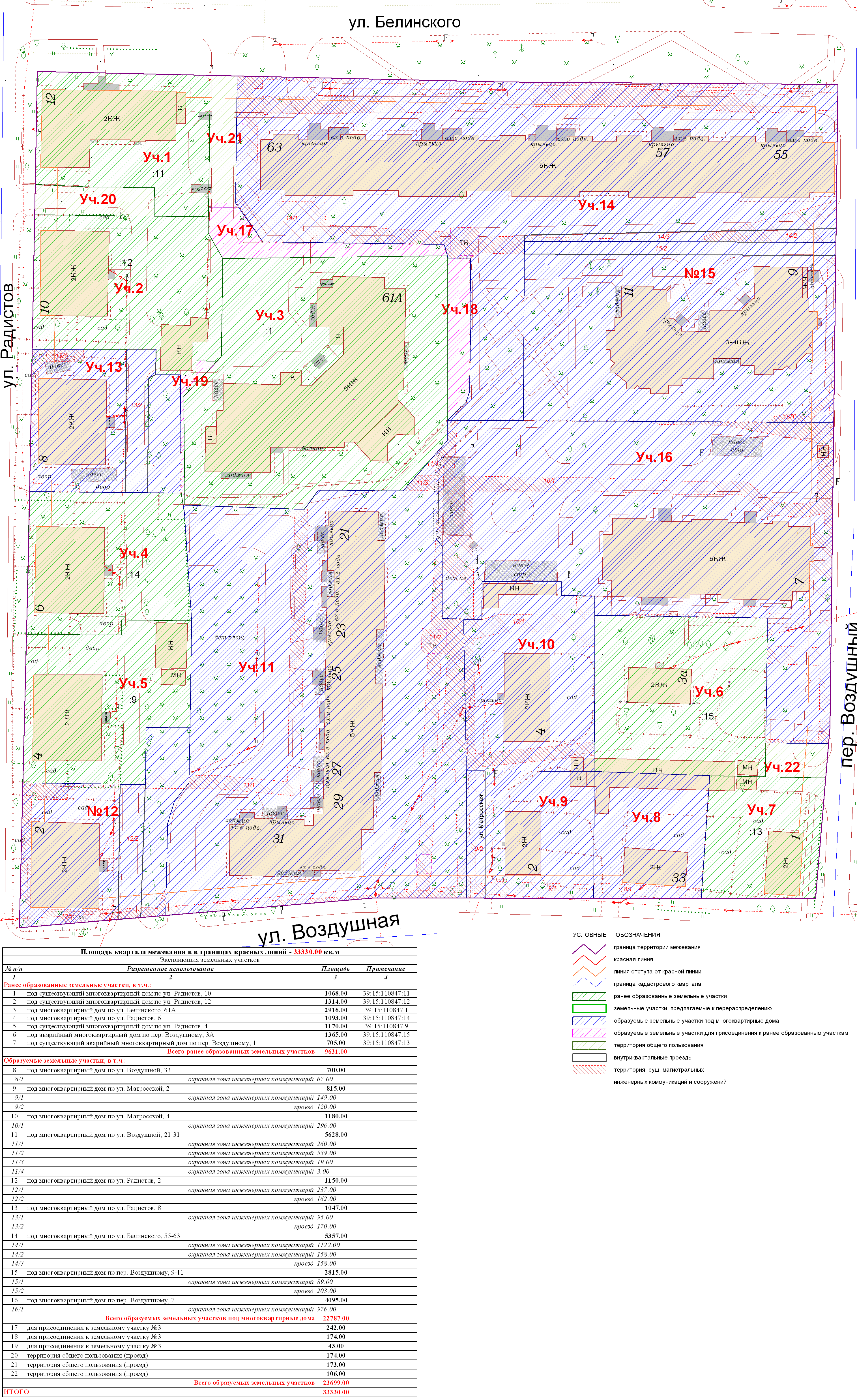 | 189 | Проект межевания квартала в границах красных линий ул. Радистов – ул. Белинского – пер. Воздушный – ул. Воздушная | 10.11.2011 в 17-00 по адресу: ул.К.Маркса, 43 (администрация Центрального района, 4 этаж, актовый зал) | Проект границ Проект границ откорректированный по итогам публичных слушаний | Заключение |