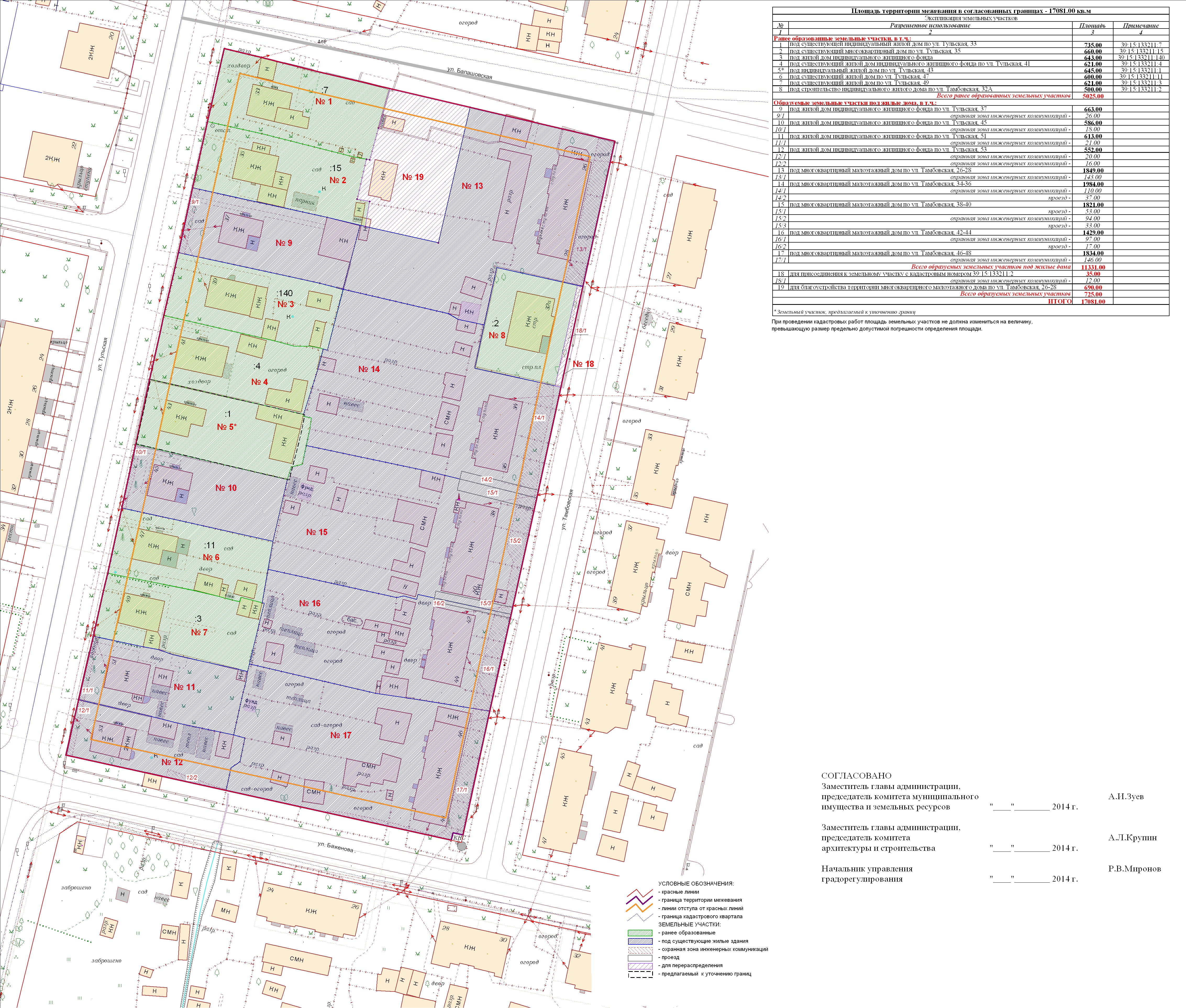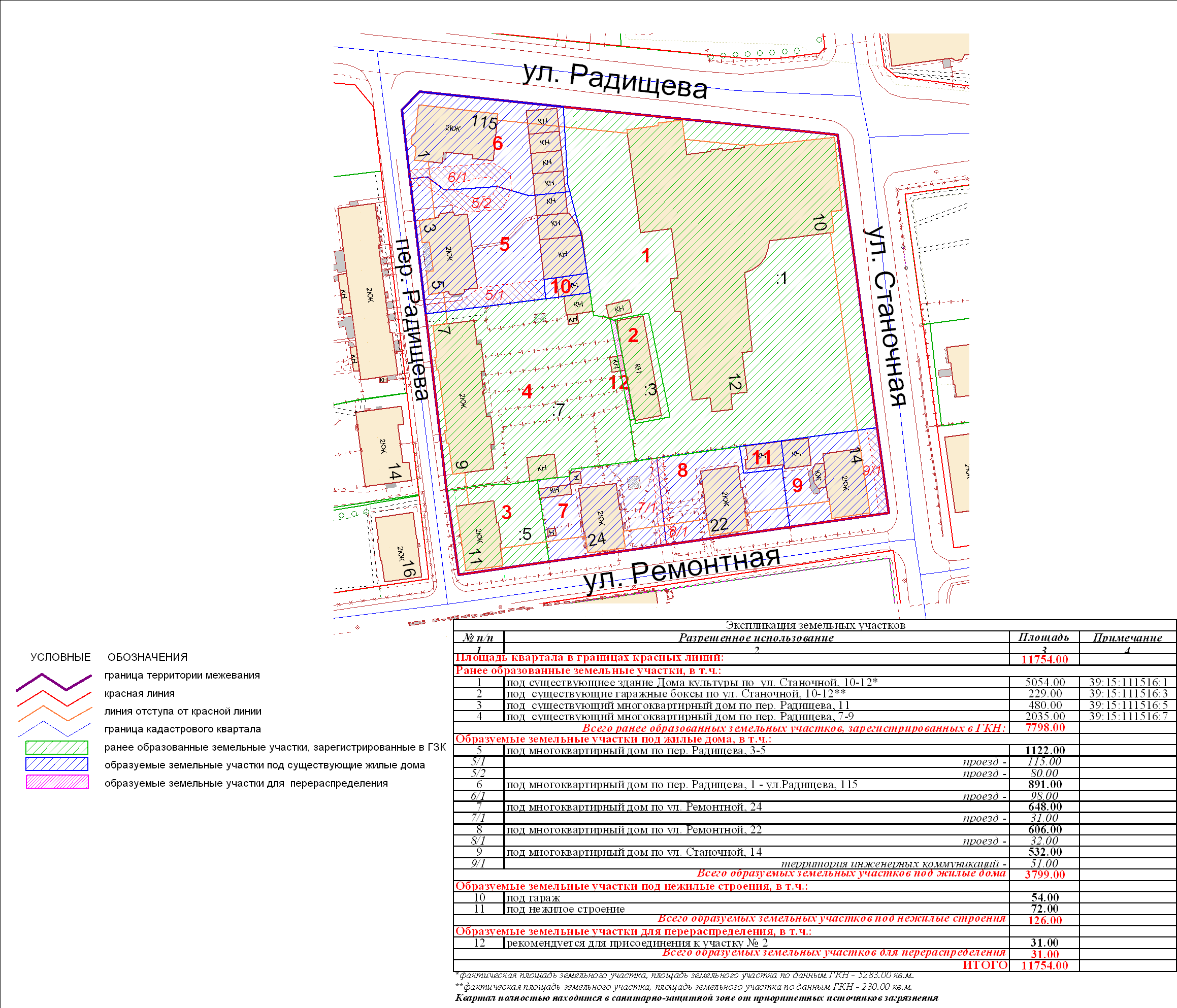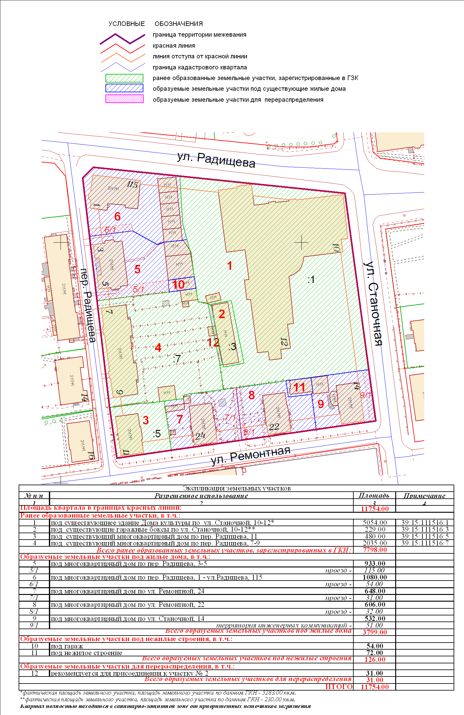 | 190 | Проект межевания квартала в границах красных линий пер. Радищева – ул. Радищева – ул. Станочная – ул. Ремонтная | 03.11.2011 в 17-00 по адресу: ул.К.Маркса, 43 (администрация Центрального района, 4 этаж, актовый зал) | Проект границ Проект границ откорректированный по итогам публичных слушаний | Заключение |
