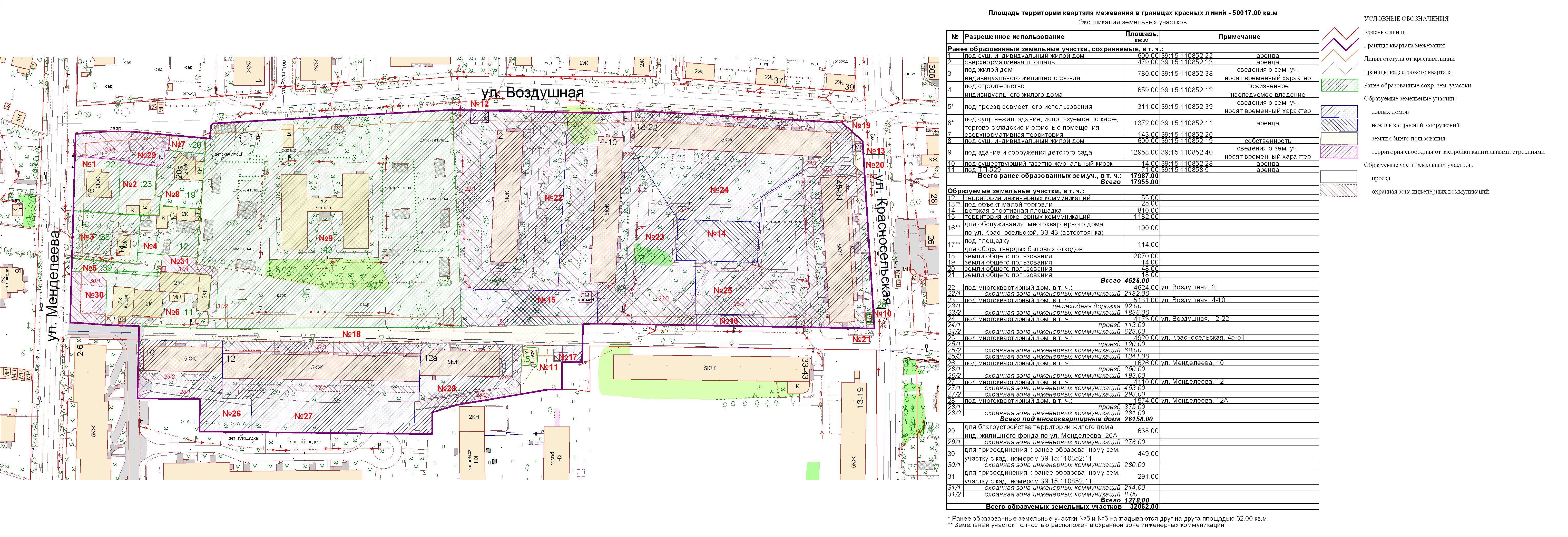 | Проект межевания квартала в границах красных линий улиц: Менделеева – Воздушная - Красносельская в Центральном районе | Публичные слушания по проекту межевания квартала в границах красных линий ул. Менделеева – ул. Воздушная – ул. Красносельская в Центральном районе состоятся 21.06.2012 г. в 17.30 в здании администрации Центрального района ГО «Город Калининград» (ул. К. Маркса, 43, актовый зал, 4-й этаж) | Проект границ Проект границ (откорректированный по результатам публичных слушаний) | ||