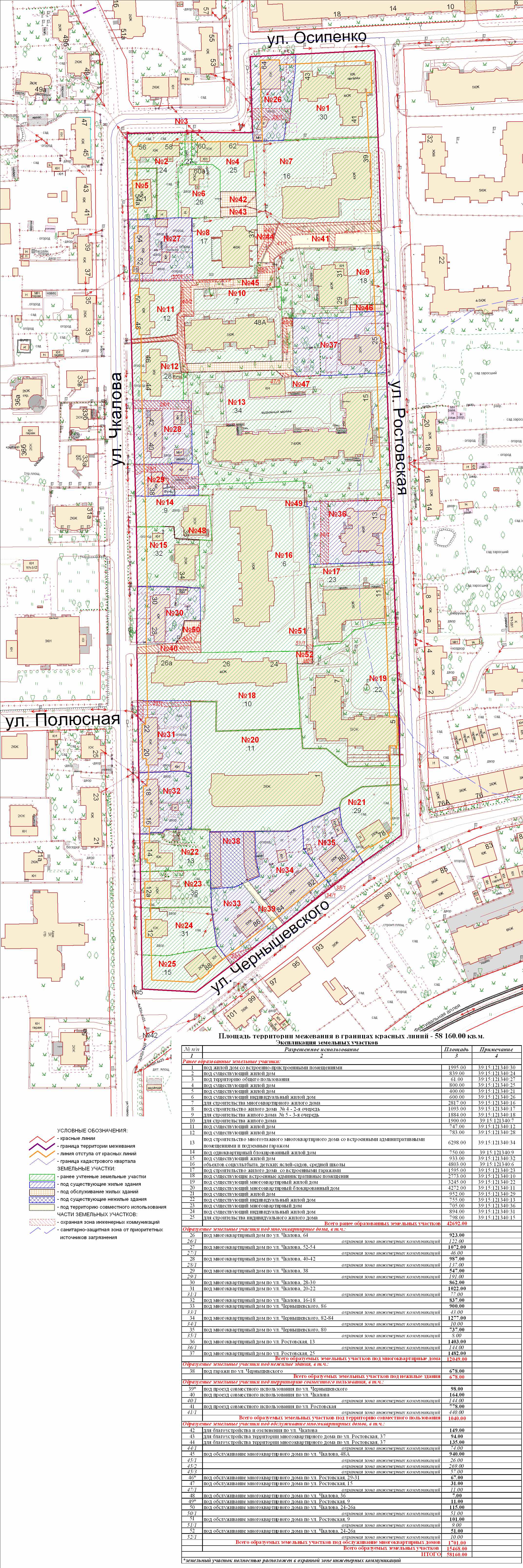 | 128 | Проект межевания квартала в границах красных линий улиц Тихорецкая – Киевская | публичные слушания назначены на 17.07.2009 в 17-00 по адресу: ул.Школьная, 2 (Школа №46) | Проект | Заключение |