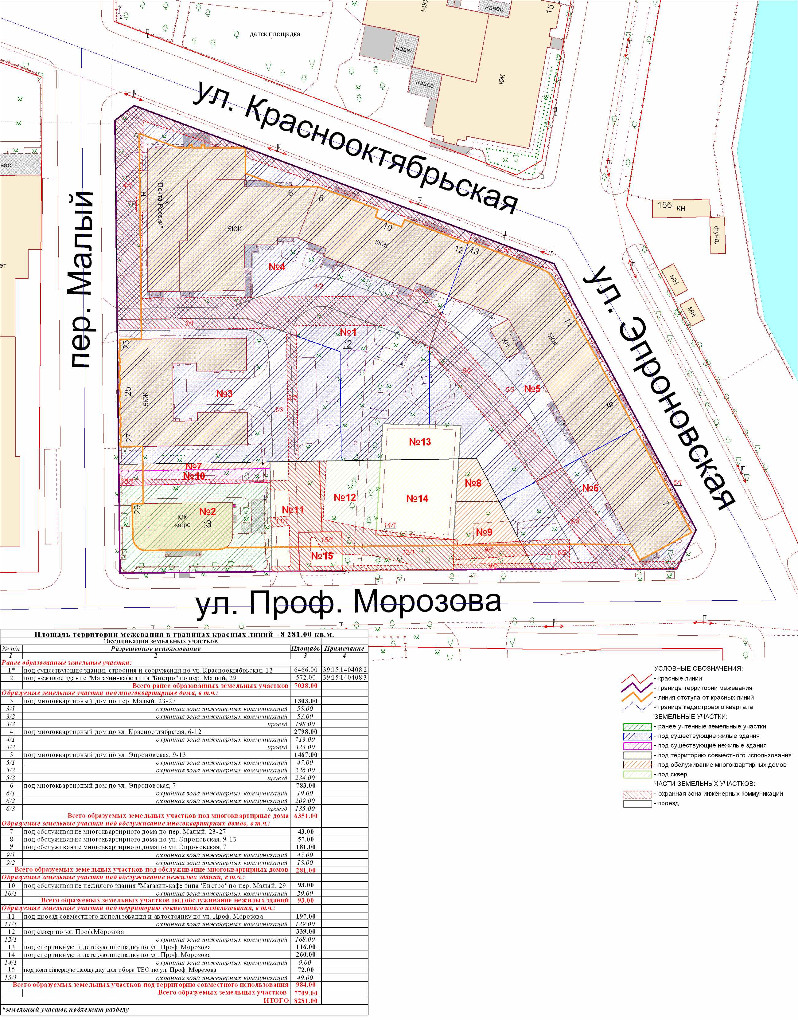 | Проект межевания территории в границах красных линий ул. П. Морозова | Публичные слушания по проект межевания территории в границах красных линий ул. П. Морозова состоятся 30.05.2011 г., в 18.00 в помещении МОУ ДОЦ ДТД и М «Янтарь» (ул. Судостроительная, 2) | Проект границ | ||