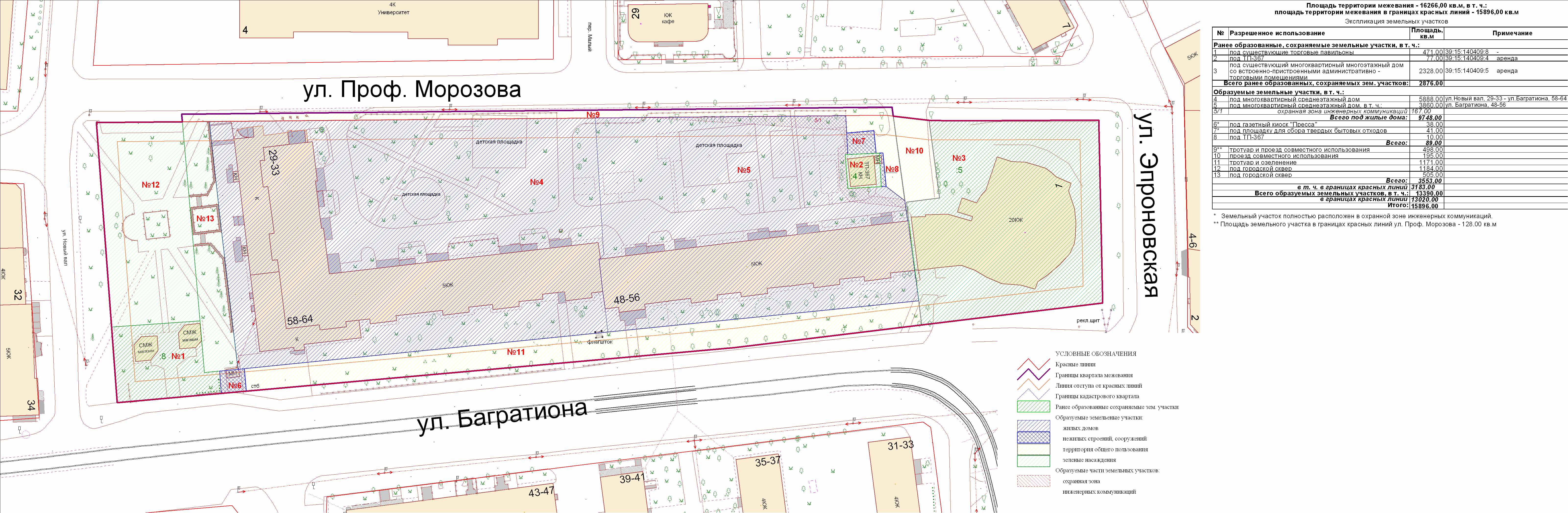 | Проект межевания территории в границах красных линий ул. П. Морозова – ул. Киевская | Публичные слушания по проекту межевания территории в границах красных линий ул. П. Морозова – ул. Киевская состоятся 24.04.2012 г. в 18.00 в помещении администрации Московского района (ул. Октябрьская, 79, каб. 311) | Проект границ Проект границ откорректированный по итогам публичных слушаний | ||