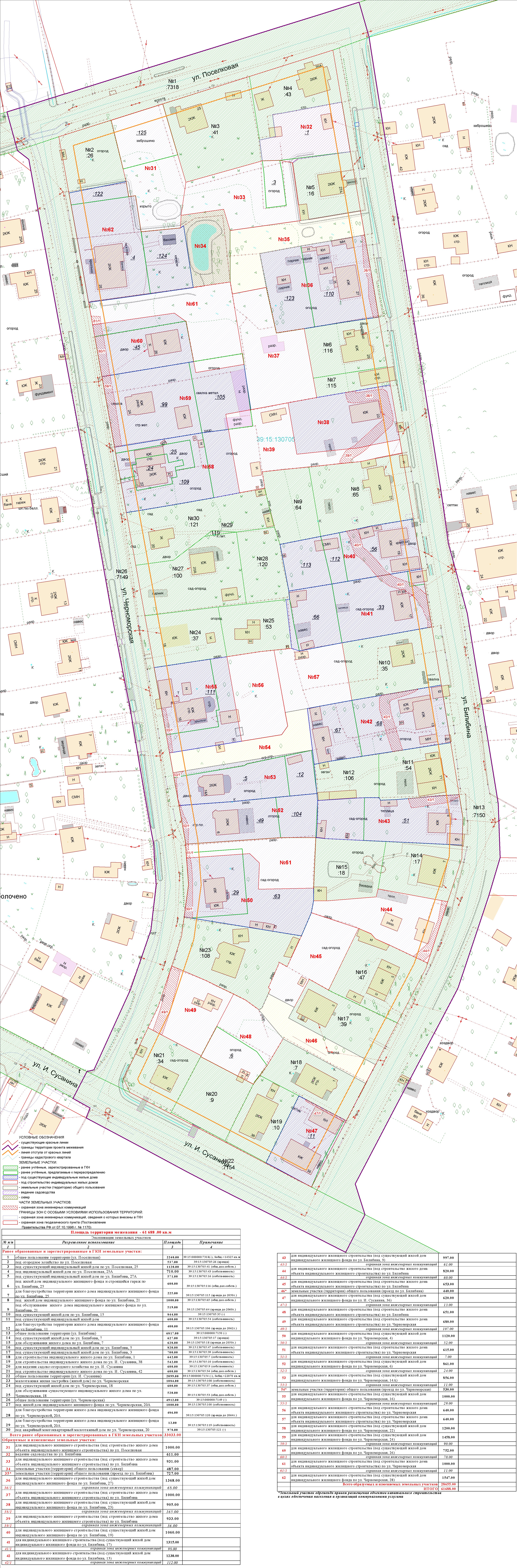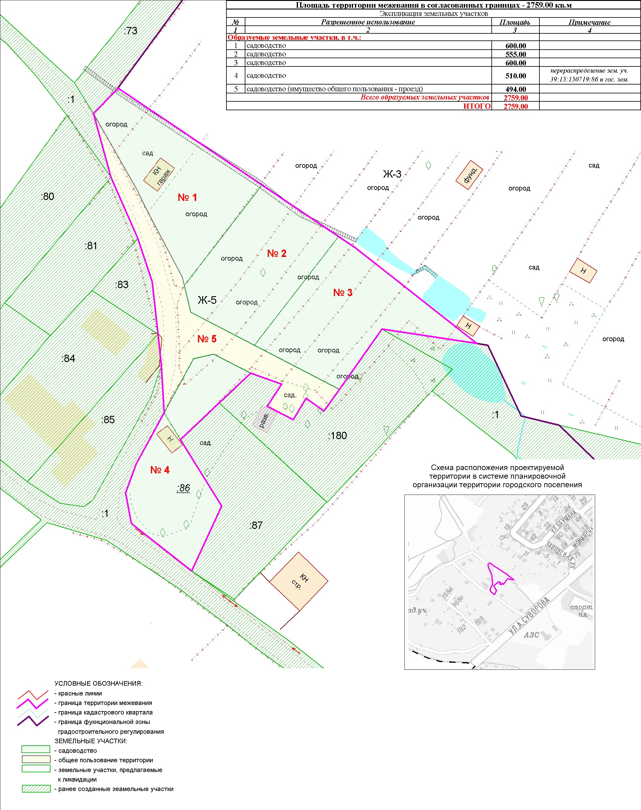 № на схеме | Наименование проекта | Место и время проведения | Материалы | Заключение | Проект межевания территории в границах улиц