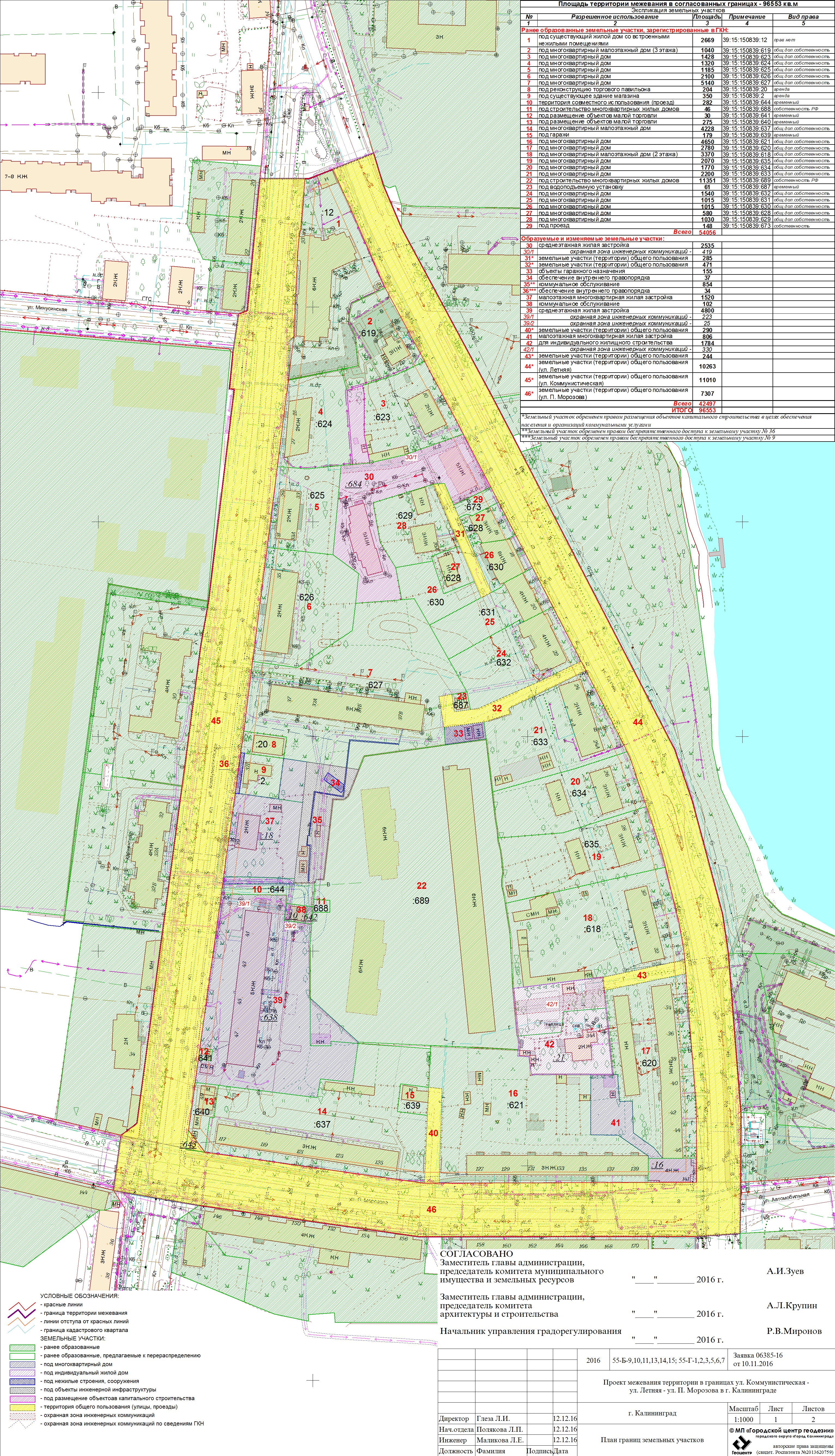г. Калининград, ул. Фрунзе, 71, каб. 25А | Оповещение Постановление Основной чертеж Опорный план Пояснительная записка | Заключение | |