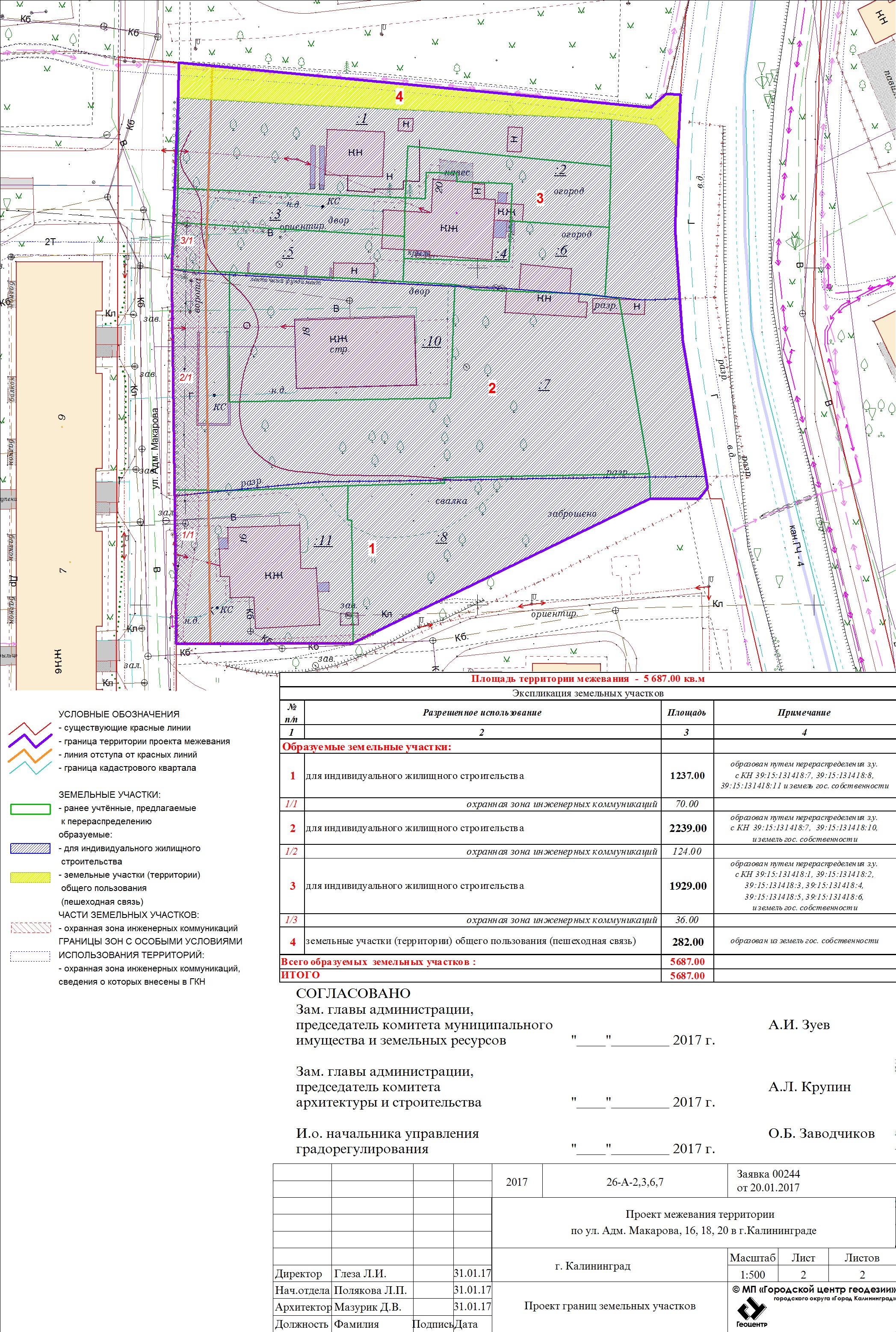 | Проект межевания территории по ул. Адм. Макарова, 16, 18, 20 в г. Калининграде | Публичные слушания назначены на 25.04.2017 в 17-00 по адресу: ул. Фрунзе, 71, каб.25а (административное здание) по проекту межевания территории по ул. Адм. Макарова, 16, 18, 20 в г. Калининграде | Проект границ | Заключение | |