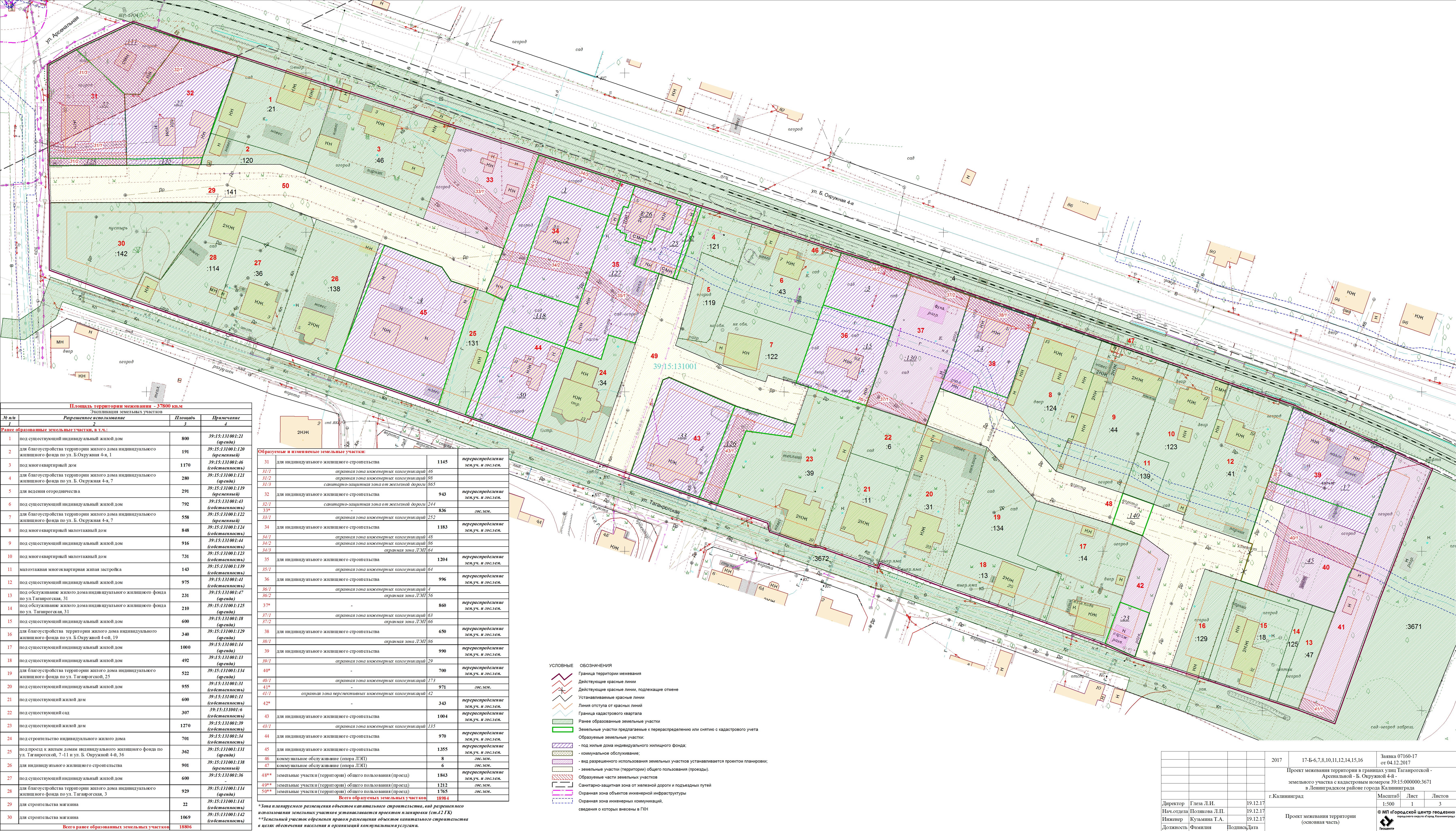 | Проект межевания территории в границах улиц Таганрогской – Арсенальной – Б. Окружной 4-й – земельного участка с кадастровым номером 39:15:000000:3671 в Ленинградском районе города Калининграда | Публичные слушания назначены на 07.08.2018 в 17 часов по адресу: ул. Фрунзе, 71, каб.25а (административное здание) по проекту межевания территории в границах улиц Таганрогской – Арсенальной – Б. Окружной 4-й – земельного участка с кадастровым номером 39:15:000000:3671 в Ленинградском районе города Калининграда | Проект границ | Заключение | |