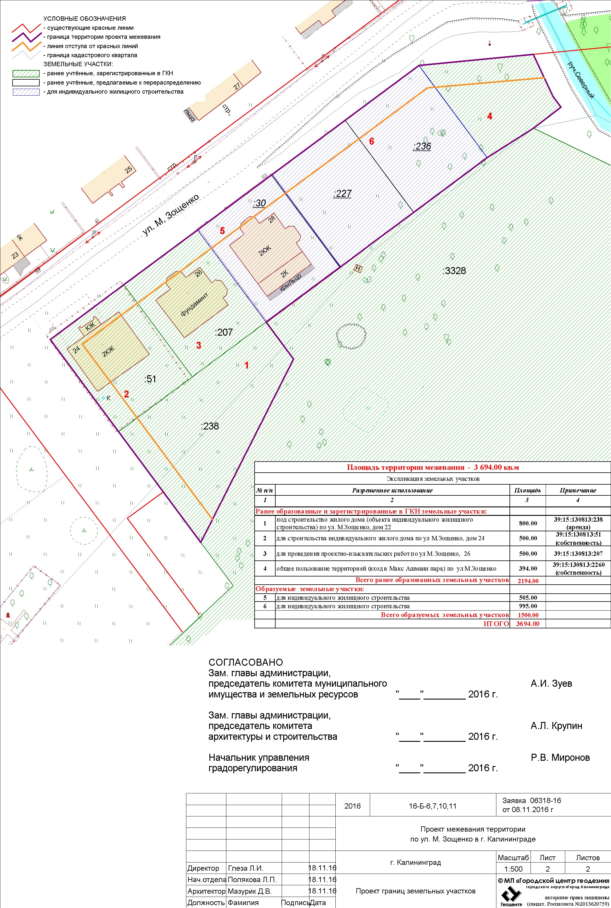 | Проект межевания территории по ул. М. Зощенко в г. Калининграде | Публичные слушания по проекту межевания территории по ул. М. Зощенко в г. Калининграде состоятся 14 декабря 2016 г. в 17 часов по адресу г. Калининград, ул. Фрунзе, 71, кабинет №25а (административное здание | Проект границ Проект границ | Заключение | |