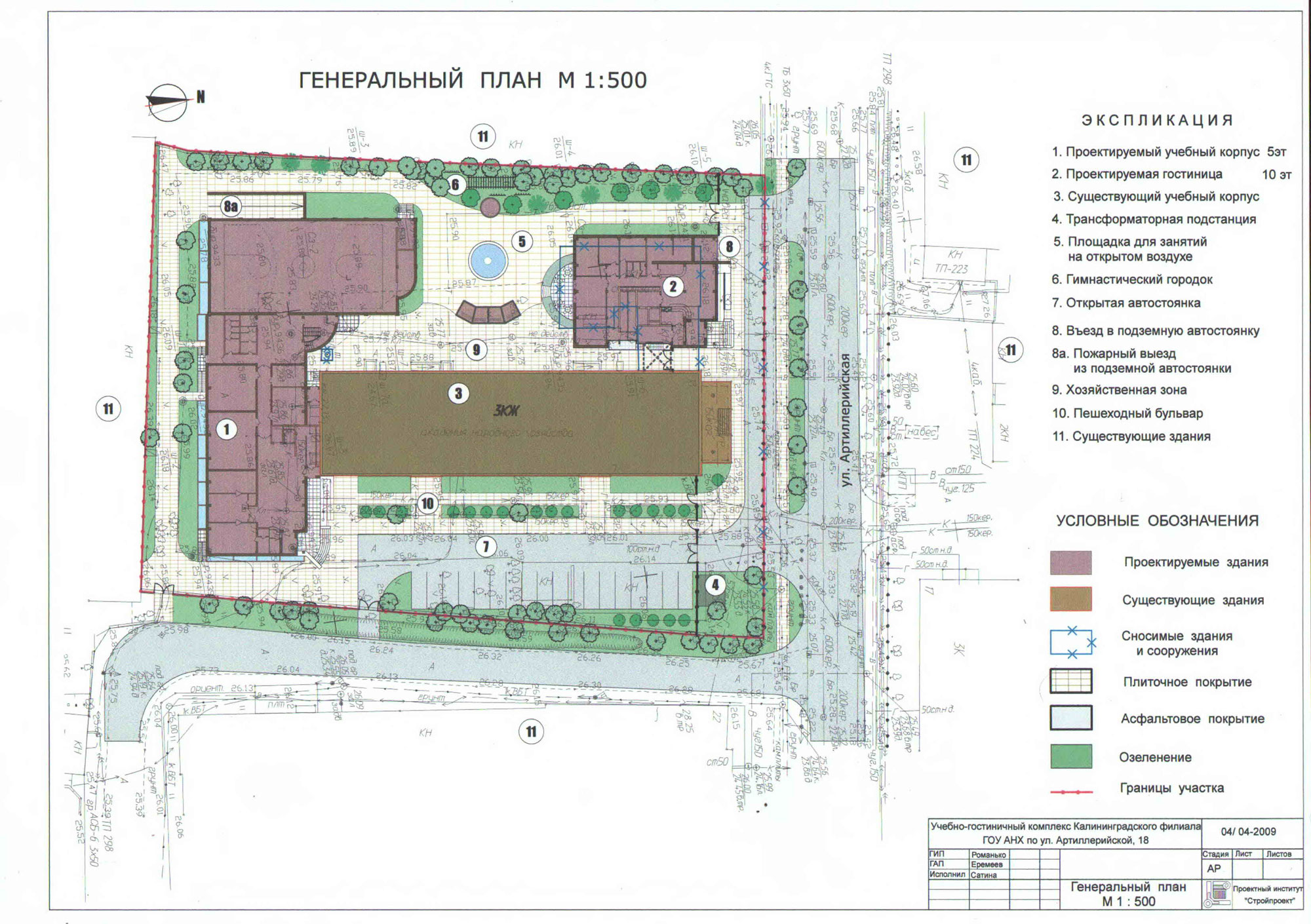 Строительство учебно-гостиничного комплекса по ул.Артиллерийской,18 в Ленинградском районе |