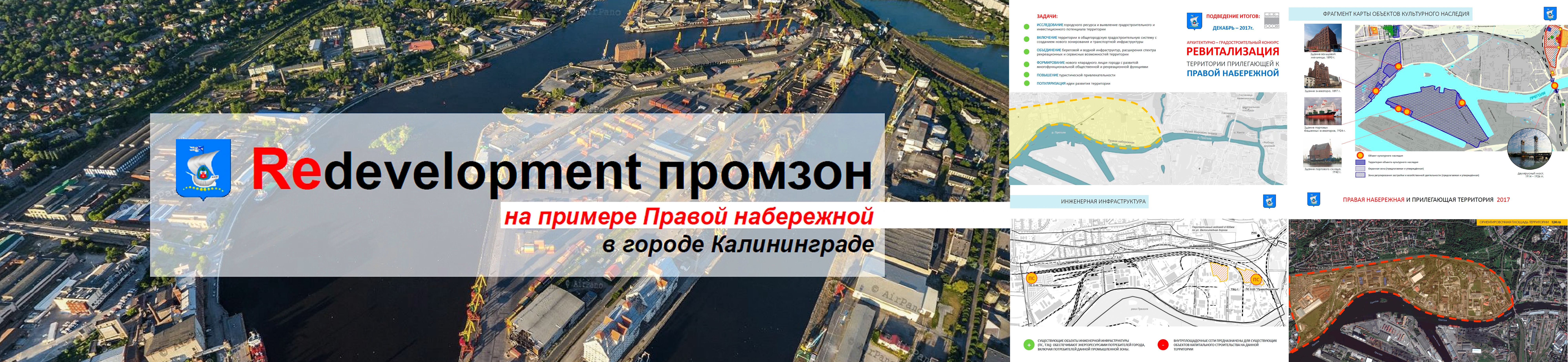 Территория Правой набережной – это около 130 гектаров перспективной застройки. Протяженность береговой линии составляет 5 км. Сегодня это зона коммунально-складских объектов, где находится несколько объектов культурного наследия (Кенигсбергский холодильник и фабрика кристаллов льда, построенный в 1913 году, здания трамвайно-ремонтных мастерских, вагоностроительного и мукомольного заводов).
