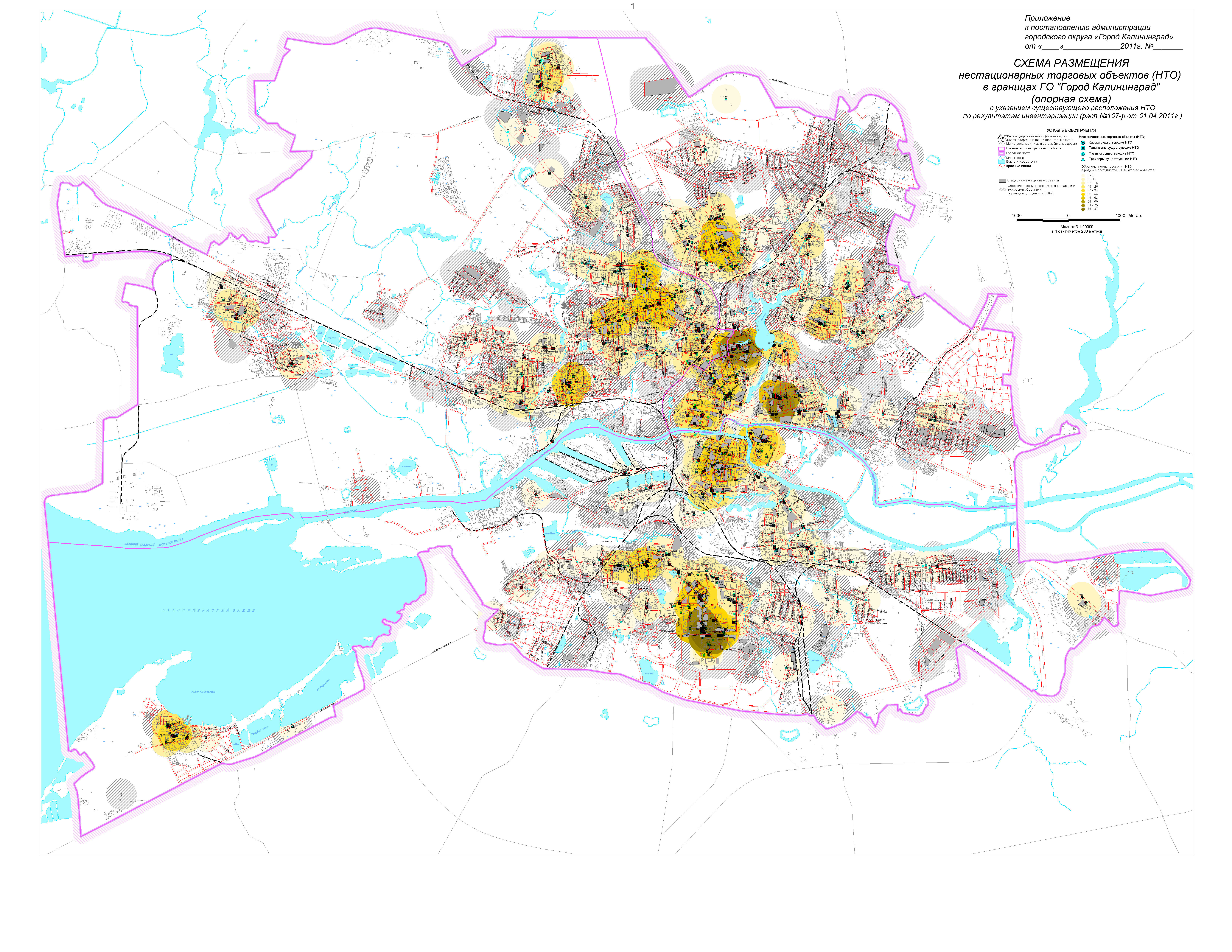 Если нестационарные торговые объекты не видны при масштабе 1:7500 и крупнее, этот слой необходимо включить в «легенде» (кнопкой «Легенда», развернуть окошко с перечнем слоев и в разделе «Городские объекты» отметить слой «Торговые объекты нестационарные» галочкой).
