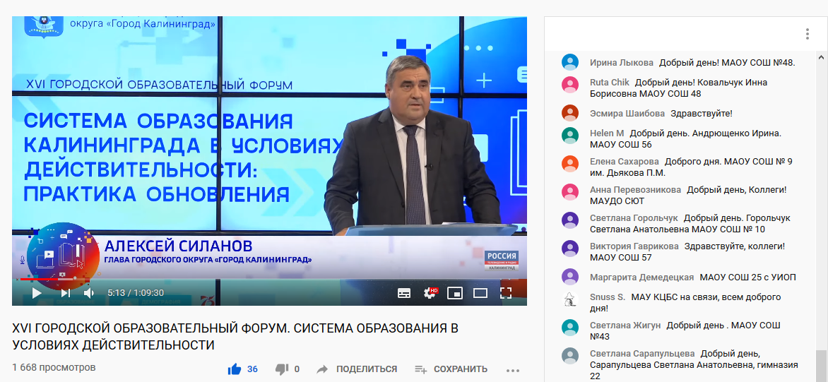 28 августа 2020 года в Калининграде в онлайн режиме прошла пленарная часть XVI городского образовательного форума.