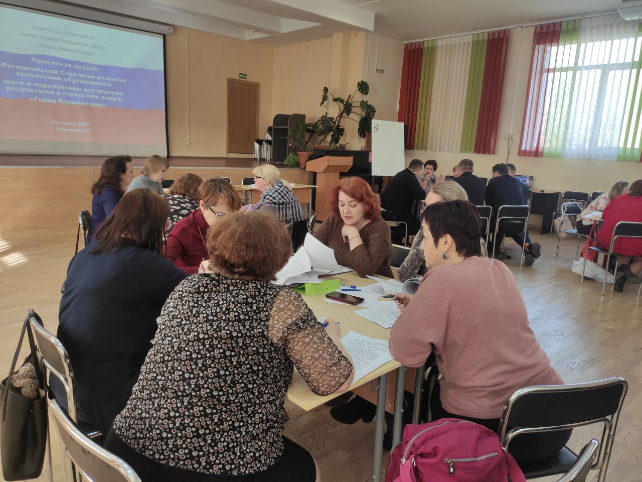 29 марта на базе МАОУ СОШ № 31 состоялась проектная сессия «Региональная стратегия развития воспитания: шаги и перспективы достижения результатов в городском округе «Город Калининград». Проектную сессию открыла Юлдасова Л.И., заместитель начальника управления общего образования комитета по образованию, которая обозначила цель проведения проектной сессии – разработка дорожной карты в образовательном пространстве города в целях создания условий для личностного развития детей и подростков.