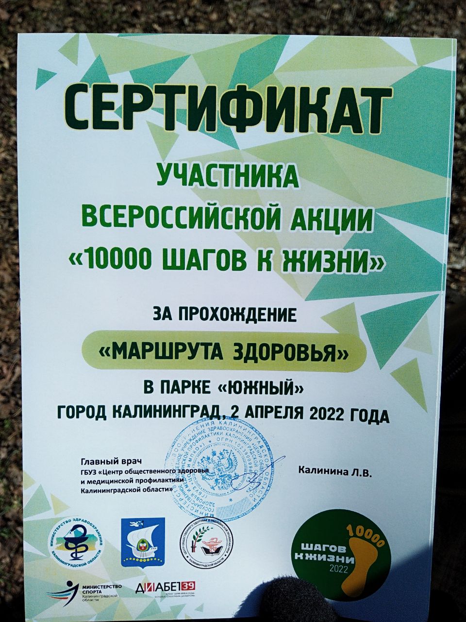 Впервые в рамках реализации совместной деятельности комитета по образованию и ГБУЗ «Центра общественного здоровья и медицинской профилактики Калининградской области» 2 апреля проведена всероссийская акция «10 000 шагов».