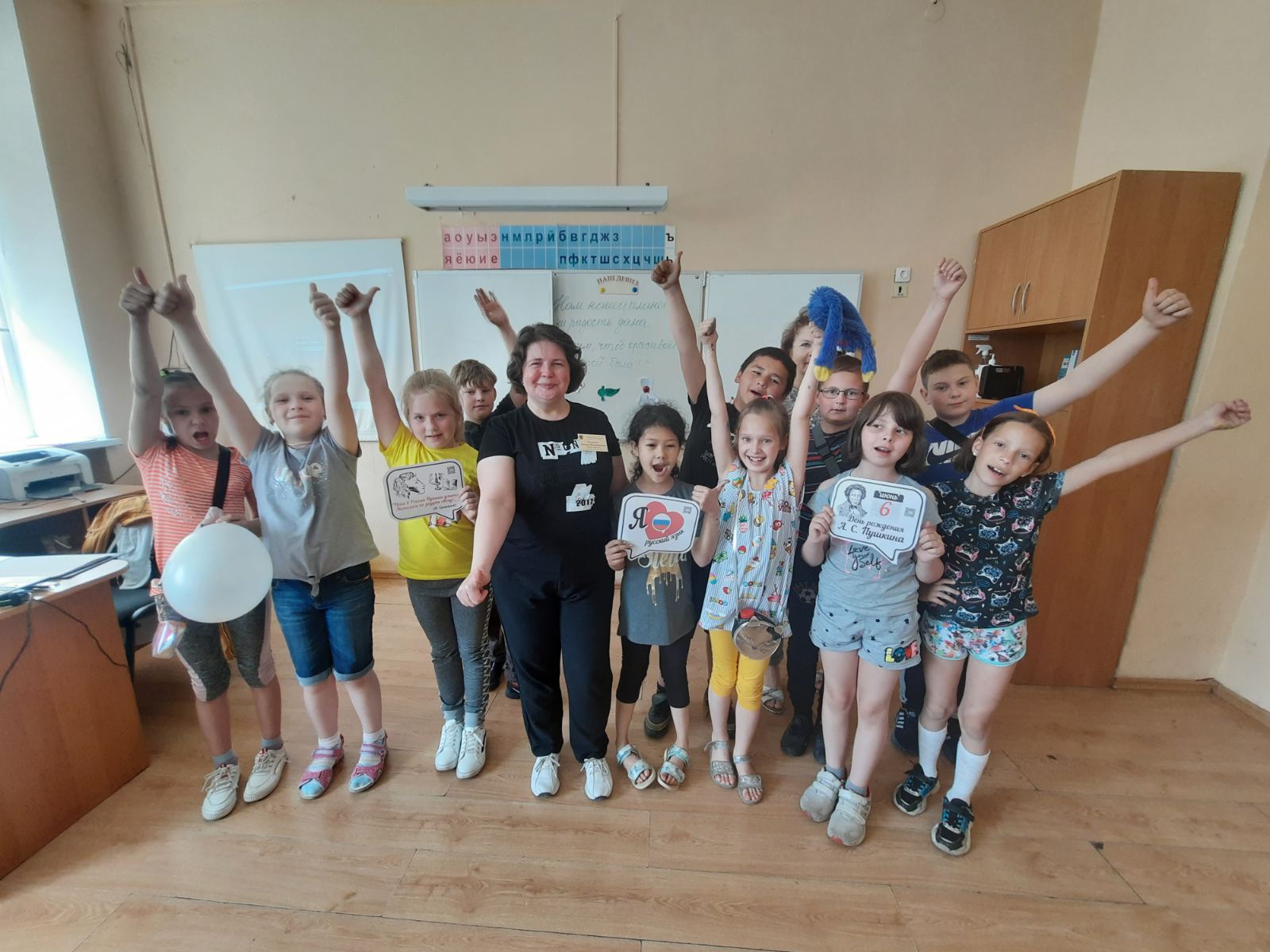 В школе № 9 им. Дьякова П.М. для ребят, посещающих пришкольный лагерь «Дружба», были проведены следующие мероприятия: марафон «Читаем классику», промоакция «Грамота.ру», КВИЗ «Загадки русских слов», конкурс чтецов «Душа поэзией полна», конкурс плакатов на асфальте «Пушкинская строка», викторина «Знатоки русского языка».