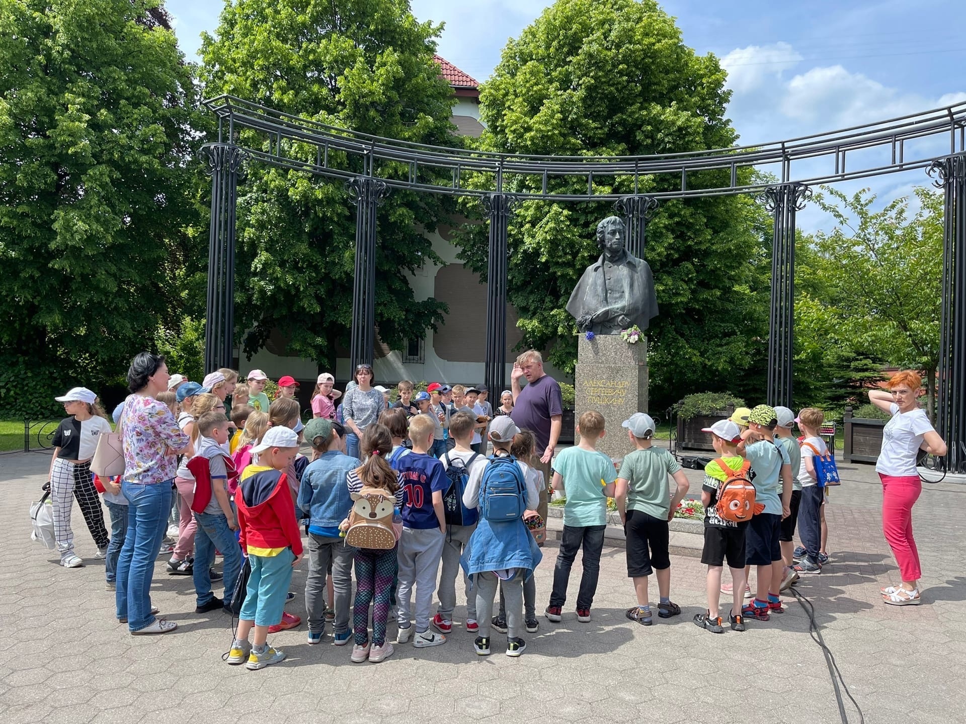 В День русского языка ребята из пришкольного лагеря лицея № 18 посетили памятник А.С. Пушкину, около которого прочли стихи великого русского поэта.