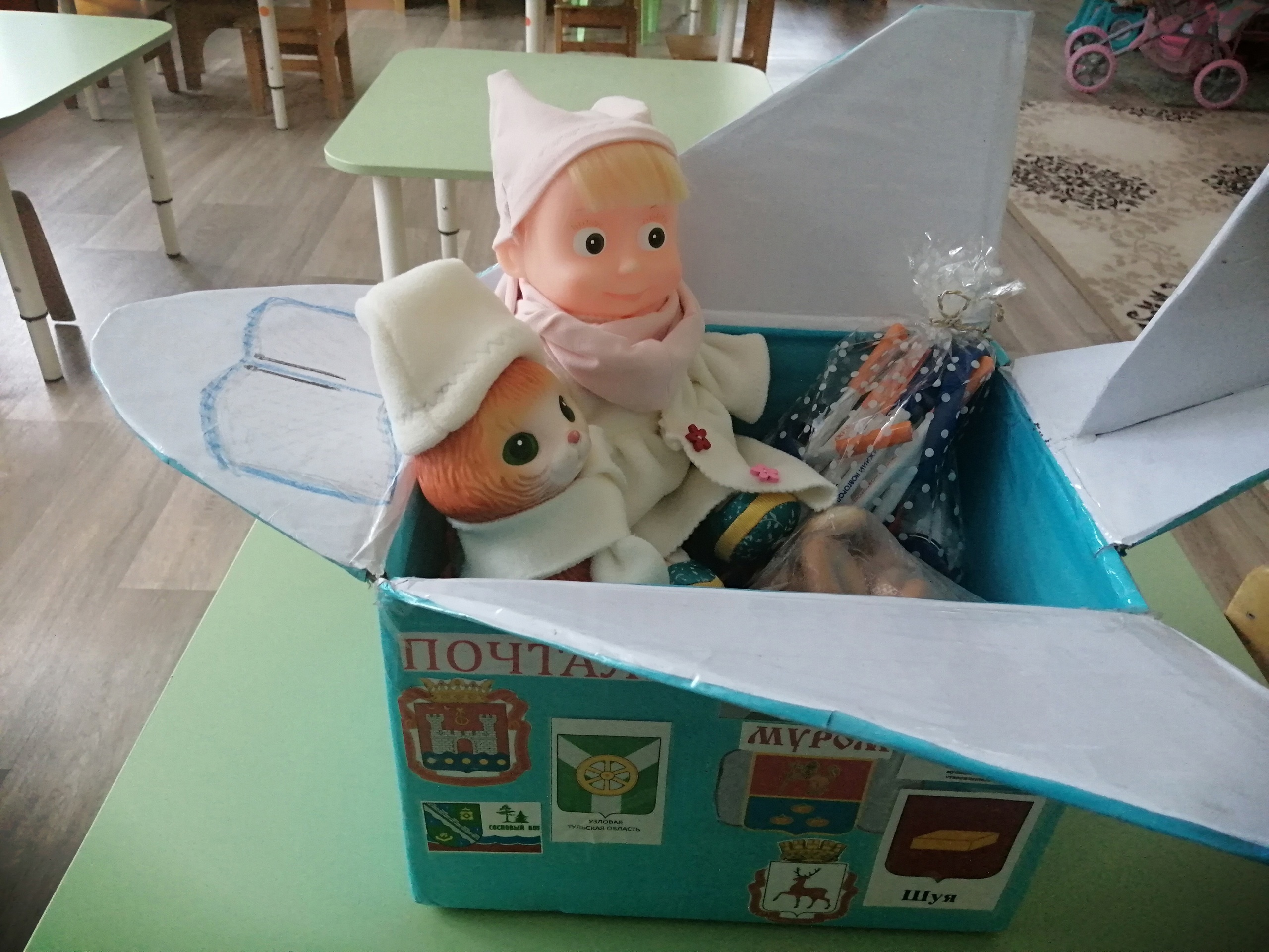 Кукла Маша и кот Янтарик путешествуют на «Почталете» по детским садам в различных российских регионах. Игрушки уже побывали в 35 городах и селах от Калининграда до Владивостока. Дети встречают их на почте и ведут знакомиться со своим городом, с особенностями культуры. А еще ребята узнают о других городах России, наблюдая за путешествием игрушек: педагоги вместе с детьми снимают видеоролики и делятся ими в соцсетях.