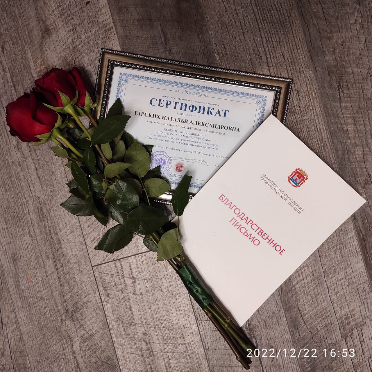 Тарских Наталья Александровна, заместитель директора МАУДО ДДТ «Родник», стала победителем в номинации «Новый формат наставничества» в региональном конкурсе профессионального мастерства «Практики наставничества в образовательных организациях».