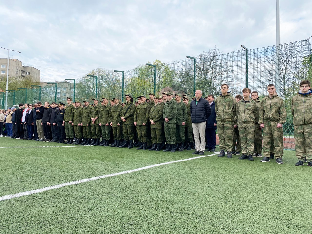 24 апреля на базе МАОУ СОШ № 38 им. В.М. Борисова состоялся митинг, посвященный пятидневным учебным сборам по основам военной службы с юношами 10-х классов муниципальных общеобразовательных учреждений города Калининграда.