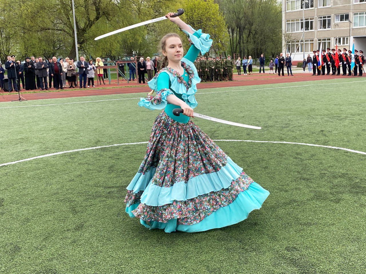 Перед гостями и участниками митинга с показательными выступлениями по боевому искусству выступили кадеты школы № 24, а с танцем с саблями - обучающаяся 8 класса школы № 21.
