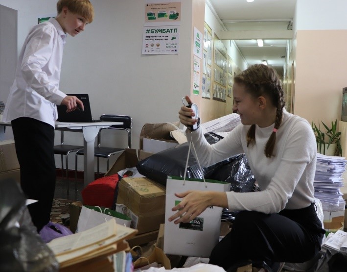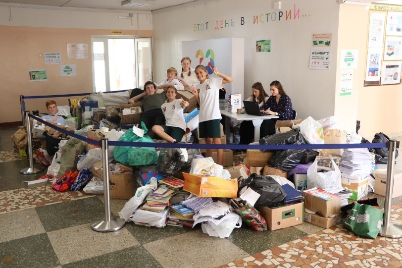 С 10.00 до 14.00 часов ученики всех классов лицея приносили старые газеты, ненужные буклеты, исписанные тетради, картон и другие бумажные отходы.