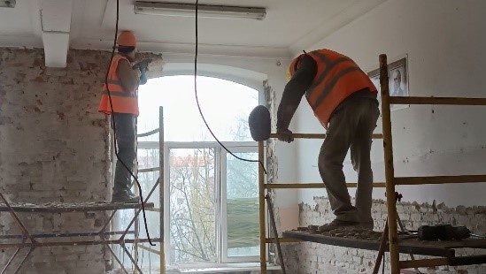 Сейчас ведутся подготовительные работы в части организации строительного городка, демонтаж штукатурки на стенах и потолке, демонтаж электрооборудования.