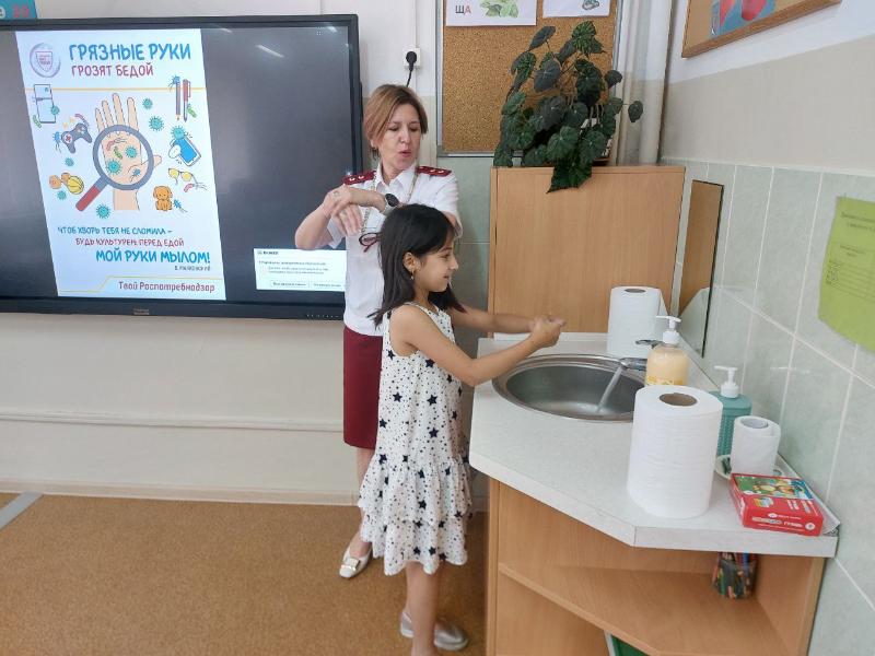 Для ребят в возрасте 8-9 лет урок был проведен в игровой форме. В ходе занятия дети узнали, что такая простая и полезная привычка, как мыть руки, является профилактикой многих заболеваний и снижает риск респираторных инфекций до 44%, а кишечных - до 47 %!