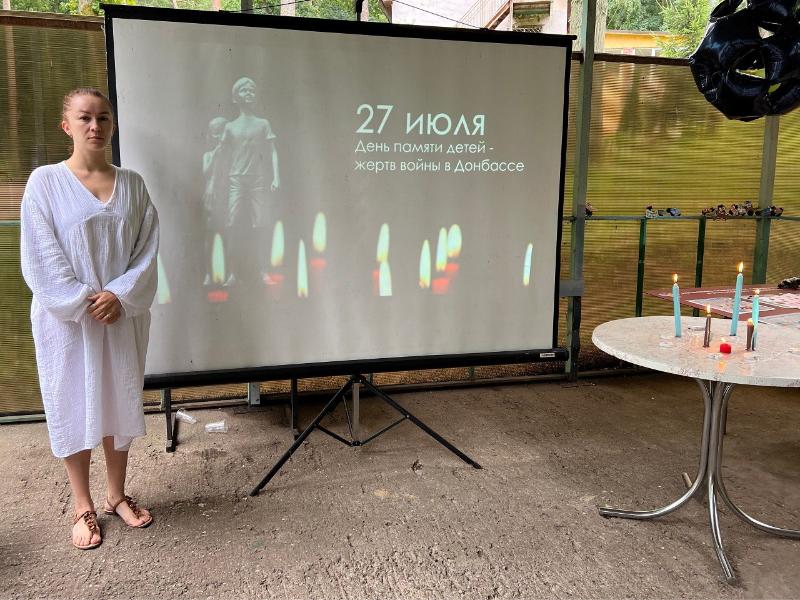 27 июля ребята, отдыхающие в муниципальных загородных центрах, приняли участие в мероприятиях, посвященных трагической дате - Дню памяти детей - жертв войны в Донбассе. Дата была учреждена в 2022 году Указом Главы Донецкой Народной Республики Денисом Пушилиным для увековечения памяти о погибших детях ДНР, о малышах и подростках, которые погибли под огнем вооруженных формирований Украины.