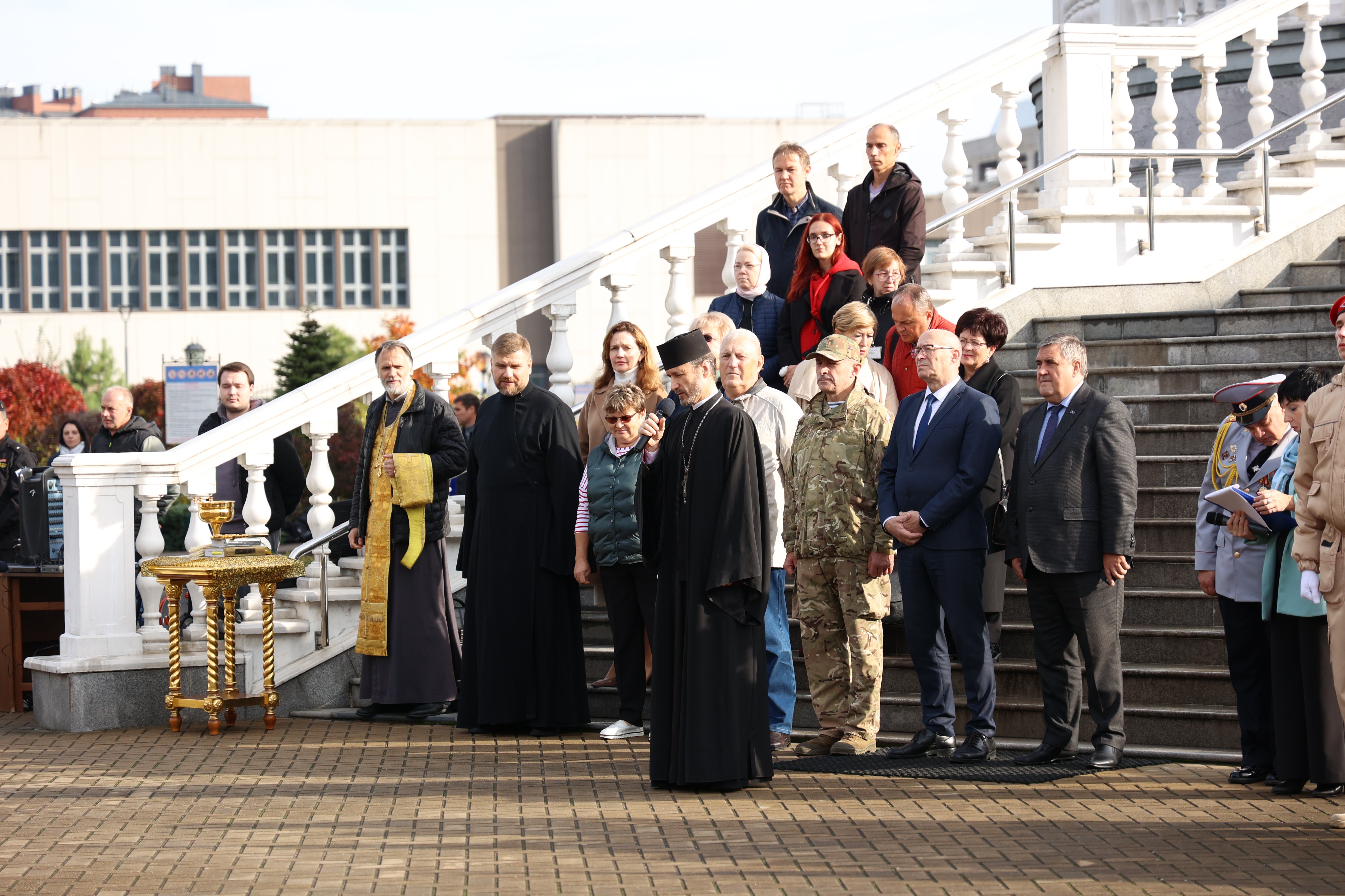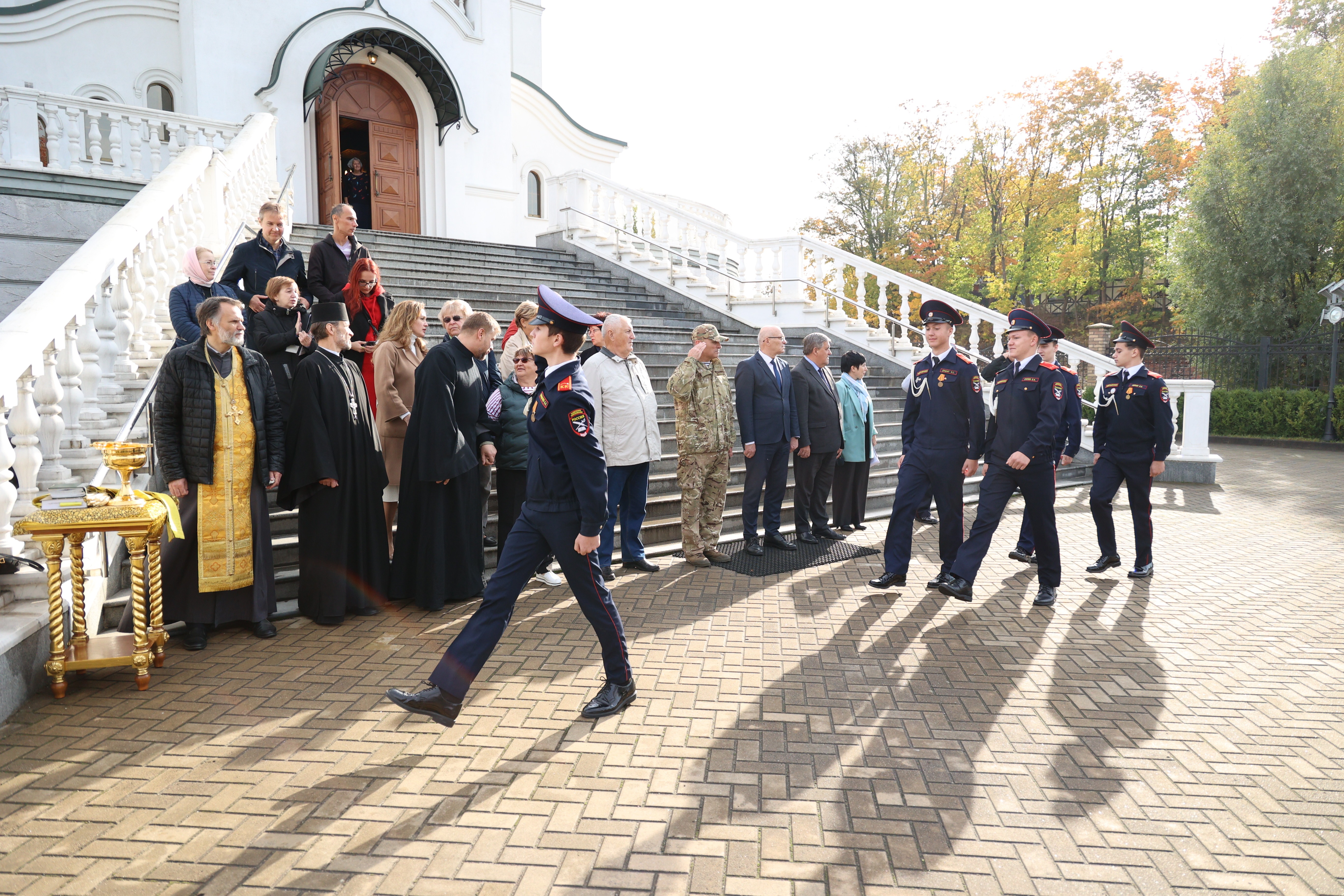 По доброй традиции торжественная церемония открытия состоялась в Храме святого благоверного великого князя Александра Невского. Возле храма собрались 16 команд, всего 80 учеников 9-11 классов общеобразовательных учреждений Калининграда.