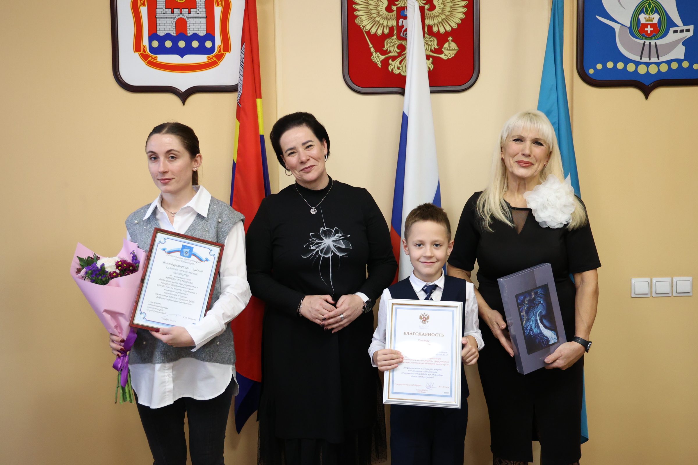 Елена Дятлова поздравила ребят, их родителей с победой в конкурсе, пожелала ребятам дальнейших успехов, отличной учёбы, поблагодарила родителей и педагогов за большую работу по воспитанию в детях любви к городу, к истории страны. Ребятам вручили благодарности и ценные подарки.
