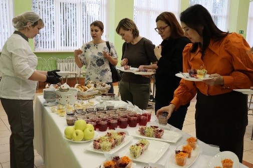 В формате «шведский стол» организаторы собрали родителей, представителей школы и местной общественности, чтобы познакомить со школьным питанием. Гостям предложили попробовать разнообразные блюда – от холодных закусок и выпечки до аппетитных супов и горячих блюд, которые можно было взять прямо с линии раздачи.
