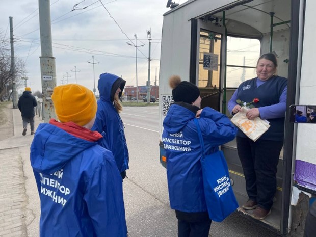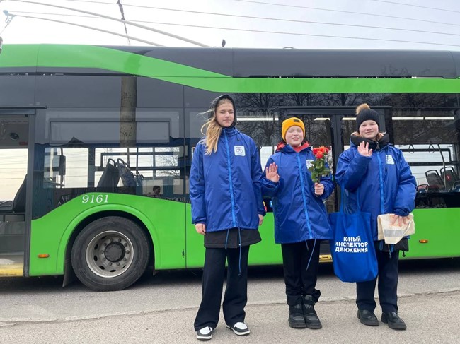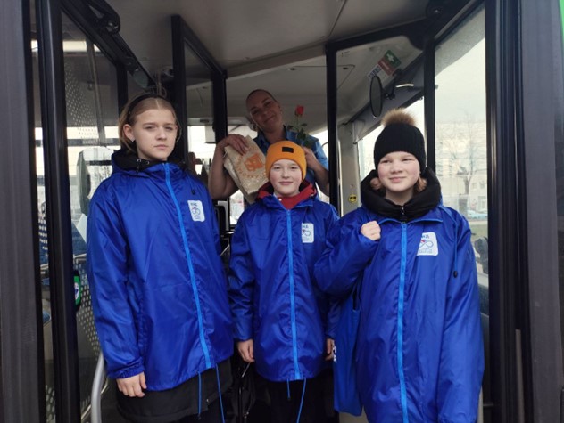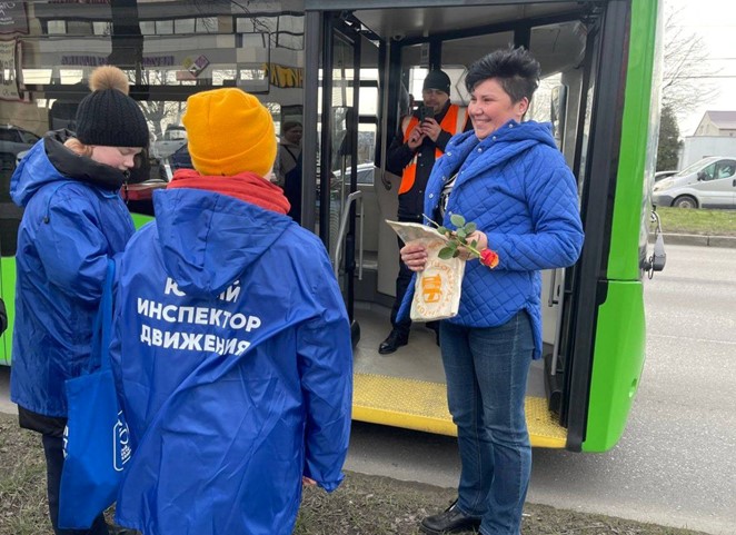 Активисты регионального отделения юных инспекторов движения (ЮИД) и обучающиеся Станции юных техников в рамках Всероссийской акции «неЖенская профессия» поздравили женщин-водителей общественного транспорта с наступающим праздником – 8 Марта.