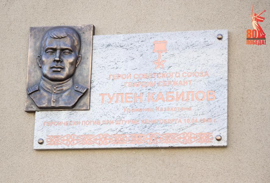 Сегодня, 9 апреля 2025 года, в Калининграде на фасаде 14-й школы появилась мемориальная табличка в память о подвиге Героя Советского Союза, участника штурма города-крепости Кёнигсберг Тулена Кабилова. В мероприятии приняли участие глава администрации Калининграда Елена Дятлова, Чрезвычайный и полномочный Посол Республики Казахстан Даурен Абаев и другие почётные гости.