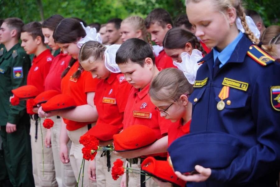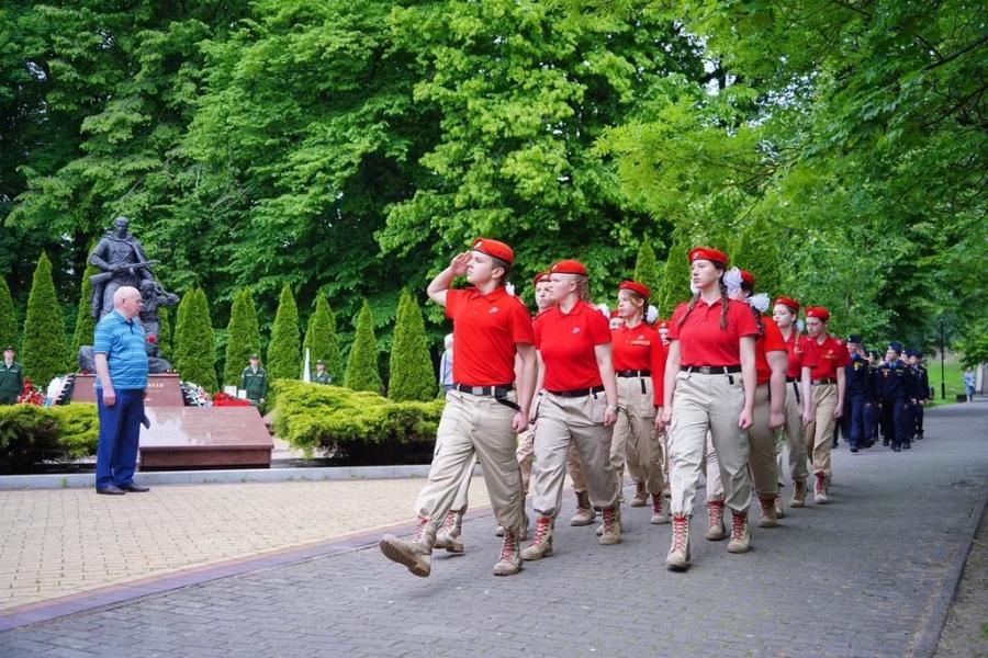 Юные патриоты возложили цветы к памятнику и прошли торжественным маршем, демонстрируя готовность хранить историческую память о героях и верность служению Отечеству.