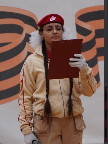 Право зачтения клятвы юнармейца было предоставлено Гашимли Нурай, обучающейся школы № 24, юнармейцу, вице-старшине 10 «К» класса, победителю муниципального и регионального этапов Всероссийской военно-спортивной игры «Ворошиловский стрелок-2025» в личном зачете, участнику военного парада 2025 года в городе Калининграде, посвященного 80-летию Великой Победы.