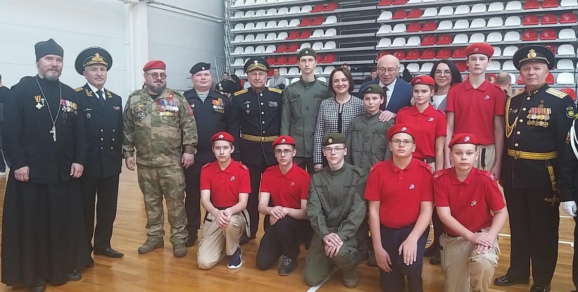 На торжественном мероприятии присутствовали почетные гости: Саломохин Юрий Васильевич, заместитель председателя городского Совета депутатов Калининграда, генерал-майор; Бражник Александр Иванович, председатель Калининградской региональной общественной организации участников Великой Отечественной войны, участников боевых действий и ветеранов Военно-Морского флота, вице-адмирал; Петухова Татьяна Михайловна, председатель комитета по образованию администрации Калининграда; Золотарев Дмитрий Игоревич, начальник штаба регионального отделения ВВПОД «Юнармия» Калининградской области, подполковник; Зверев Игорь Иванович, ветеран Военно-Морского флота, моряк-подводник, контр-адмирал; Кудрявцева Кристина Юозовна, заместитель председателя регионального отделения общероссийского общественно-государственного движения детей и молодежи «Движение Первых» Калининградской области; Горбулинский Артем Васильевич, участник специальной военной операции, кавалер медали «За Храбрость» 2-й степени и медали Жукова, спикер молодежного Правительства Калининградской области и Русского общества знаний, гвардии старший сержант 336 бригады Морской пехоты; Иерей Константин Киосев, настоятель храма святого Александра Невского (г. Балтийск), помощник командира по работе с верующими военнослужащими бригады морской пехоты Балтийского флота, кавалер Ордена Мужества.