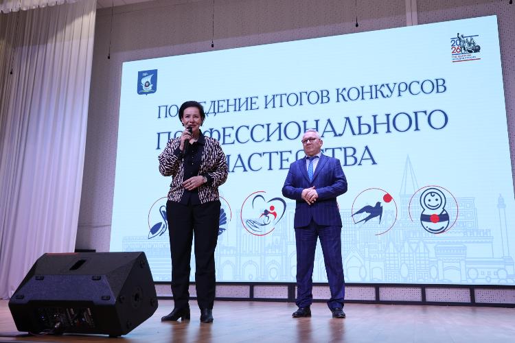 Сегодня, 3 февраля 2026 года, в Калининграде состоялась торжественная церемония подведения итогов муниципального этапа конкурсов профмастерства «Учитель года России», «Воспитатель года», «Младший воспитатель», «Педагогический дебют», «Сердце отдаю детям» и «Специалист года». Приветствовали гостей праздника глава администрации Калининграда Елена Дятлова, глава Калининграда Олег Аминов и другие почётные гости.