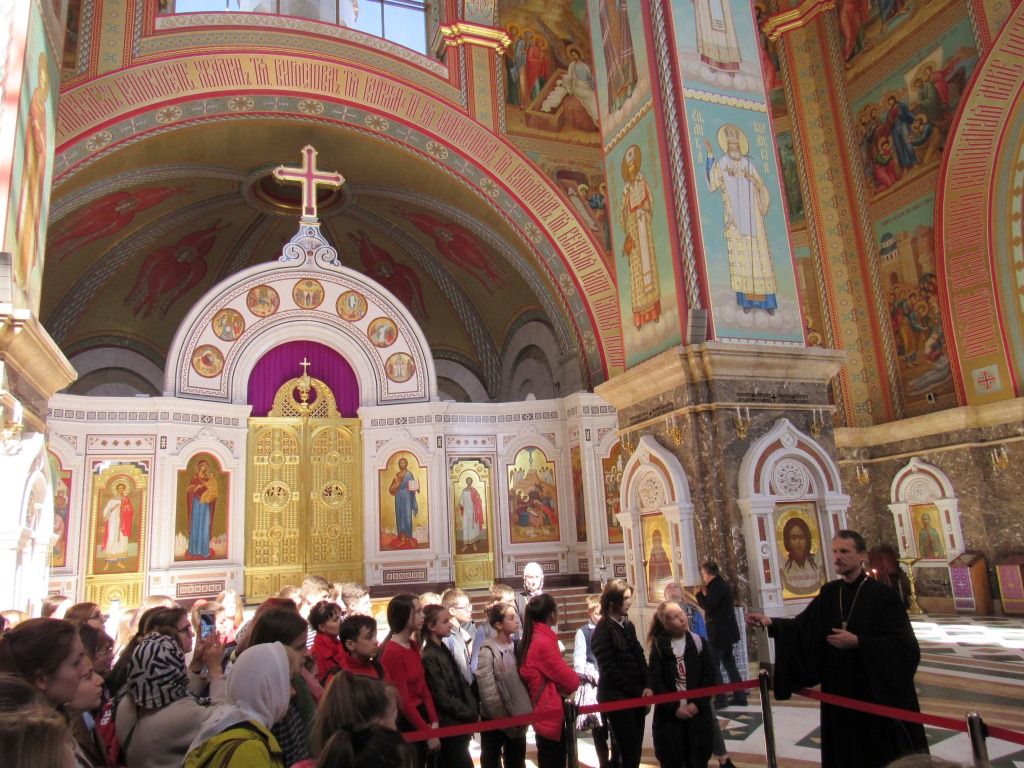 Школьники ознакомились с внутренним убранством храма, изображенными на фресках историческими и библейскими сюжетами, историей создания фресок.