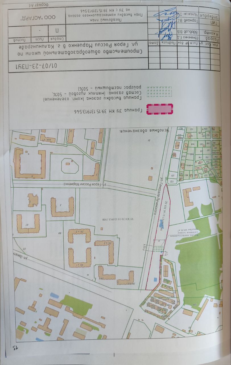 | МБУ "УКС". Строительство общеобразовательной школы по ул. Героя России Мариенко в г. Калининграде | ул. Героя России Мариенко (КН 39:15:131913:1938), ул. Артиллерийская (КН 39:15:131913:546) | посадка 175 деревьев, 27 кустарников , обустройство 18534 кв. м. газона обыкновенного |