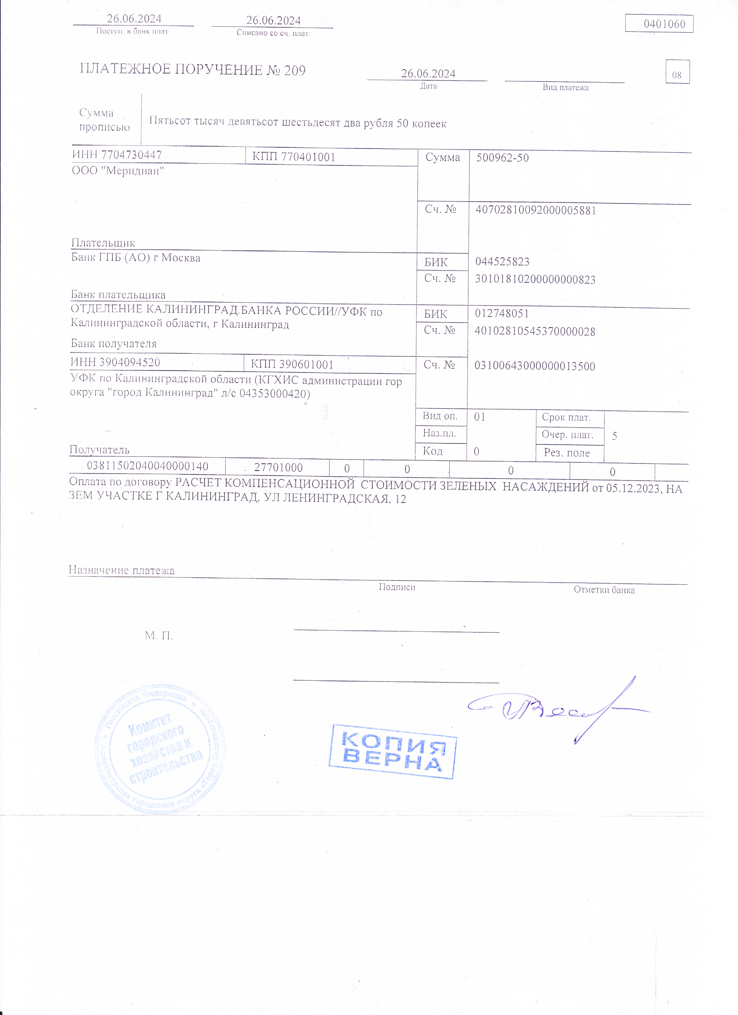 Акт оценки объемов и качества выполненных работ (выполненное компенсационное озеленение): |