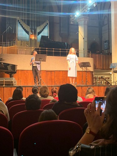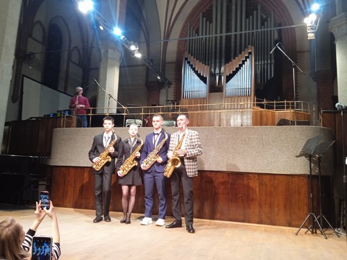 Завершили концерт номера в исполнении выпускницы 2019 года Уфимцевой Дарьи (эстрадно-джазовый вокал) и ансамбля саксофонистов (Фёдорова Анна, Туманов Артем, Гордиенко Федор, Талисман Игорь Досеевич), при этом каждый участник ансамбля саксофонистов исполнил и сольный номер.