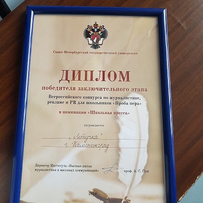 В этот же период проходило награждение по итогам Всероссийского конкурса школьных СМИ SCHOOLIZDAT 2.0, проводимого Высшей школой печати и медиатехнологий ФГБОУ ВО Санкт-Петербургского государственного университета промышленных технологий и дизайна. В номинации «Авторская фотография» победу вновь одержал Степан Левченко.